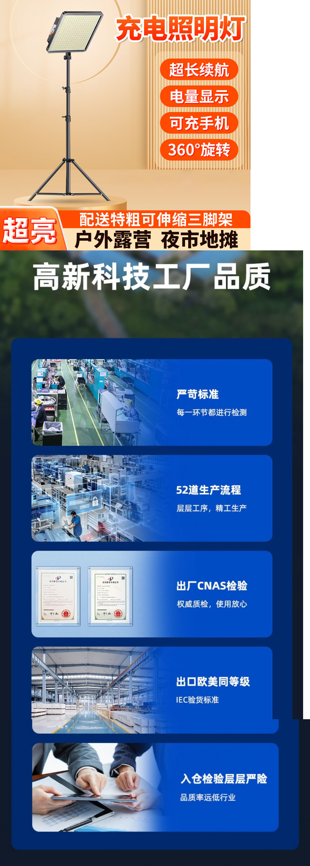 | 顔色 | 防水【三擋充電燈】+2.1米支架+快充線-普亮LED【950WDh】2.5-5小時 |