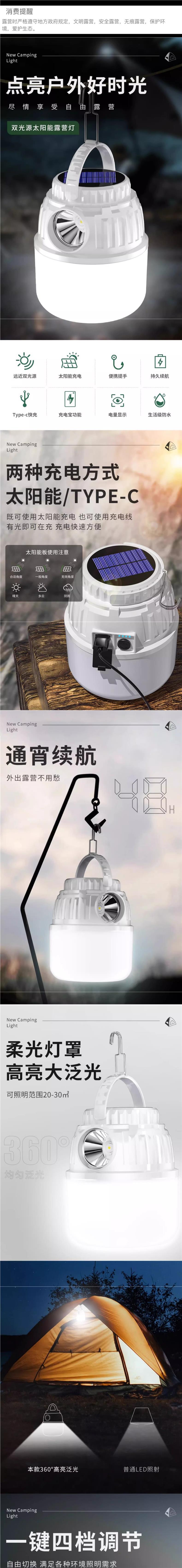 太陽能露營燈夜市擺攤照明停電應急燈充電超長續航戶外帳篷燈掛燈