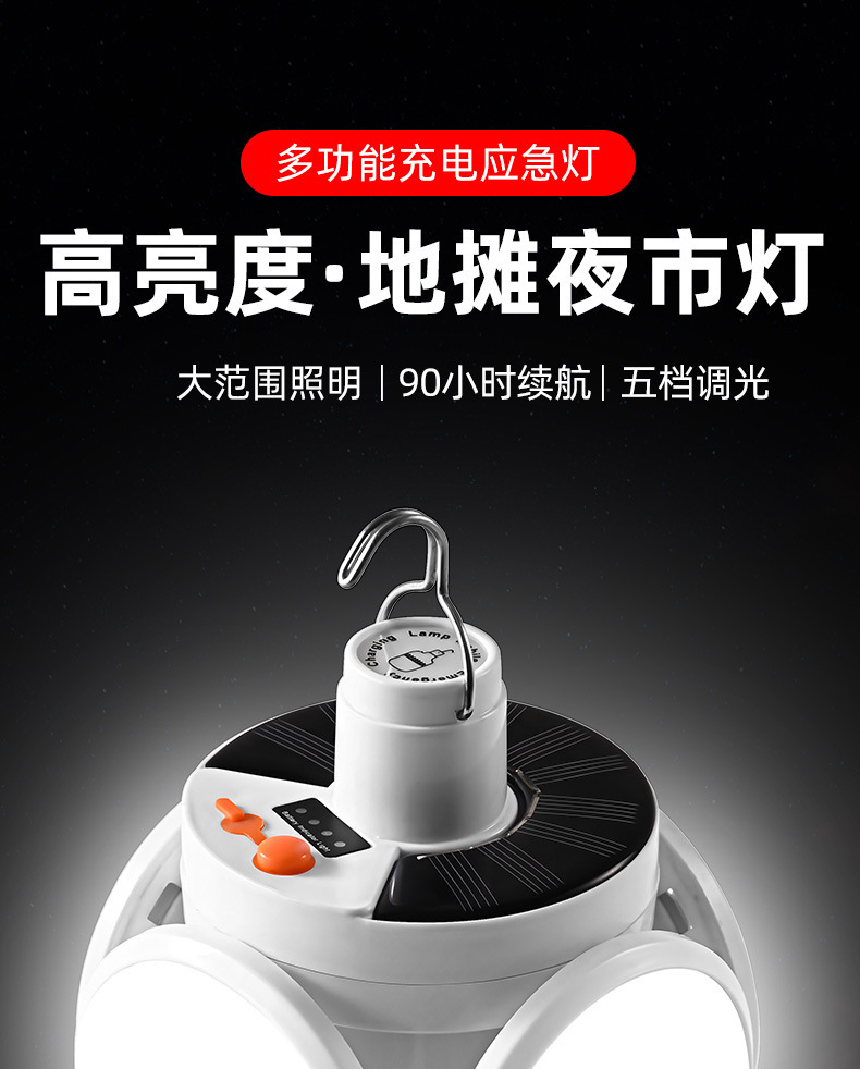 新款led擺攤夜市燈太陽能多功能折疊足球燈 停電應急節能充電燈泡