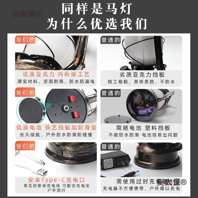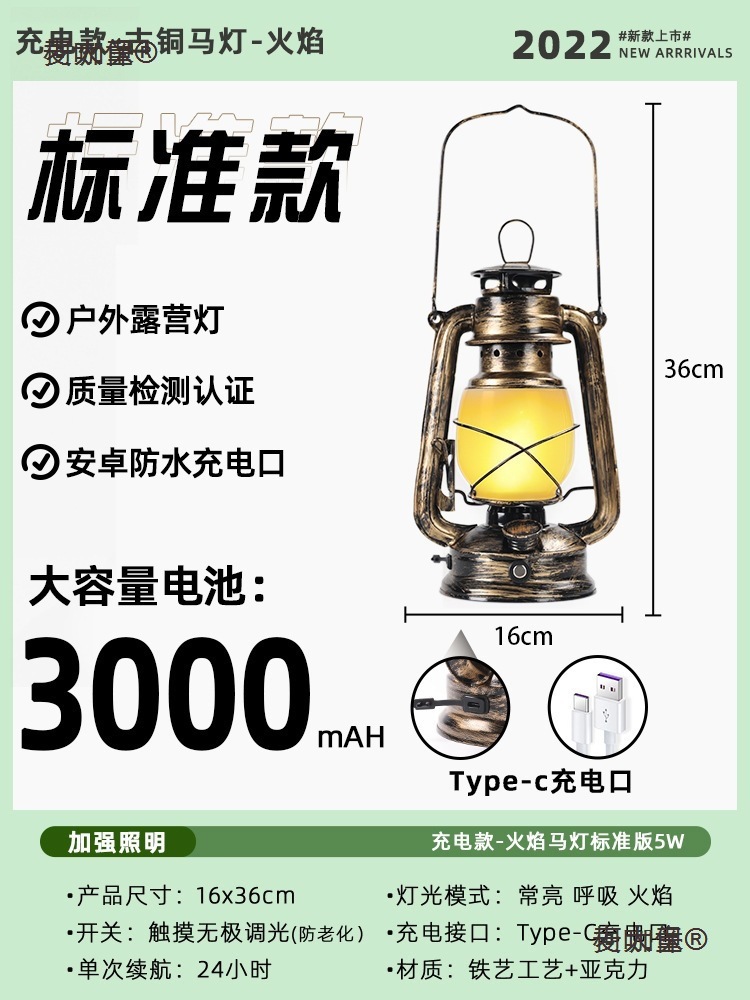 戶外復古露營燈馬燈充電手提燈野營氛圍燈老式煤油燈帳篷燈麥太保