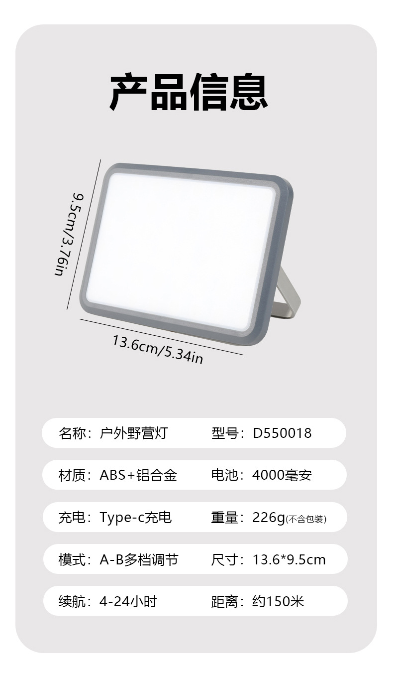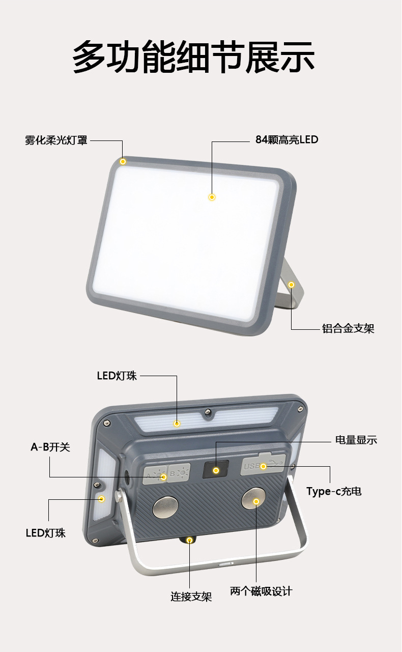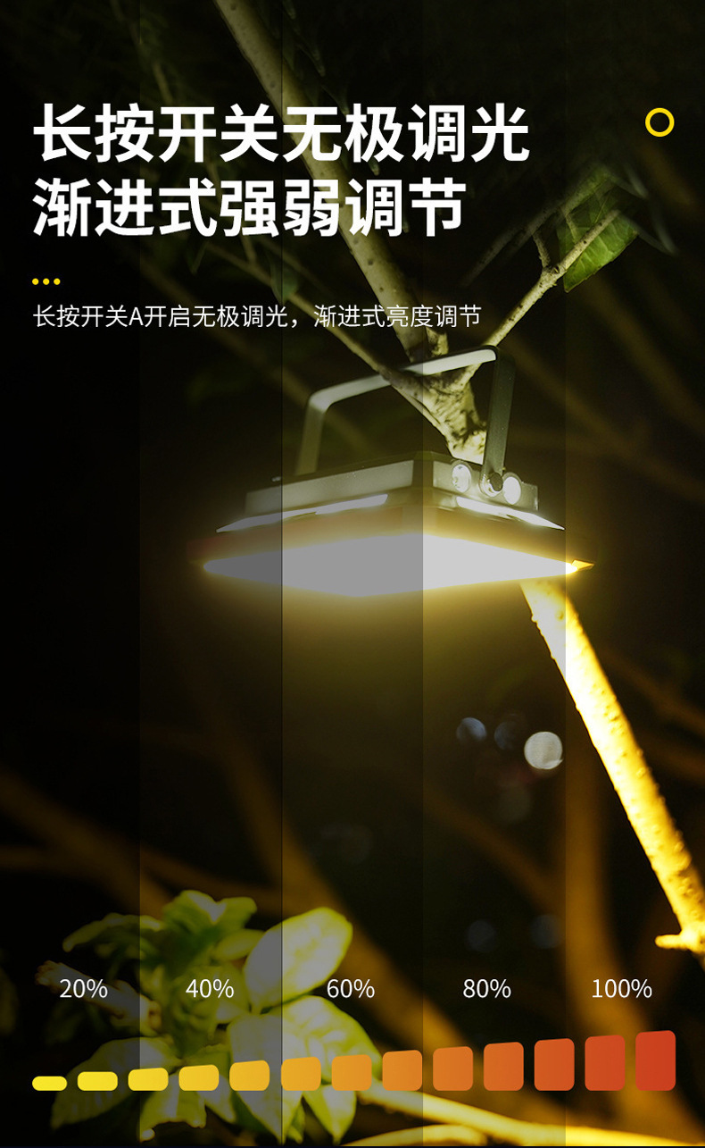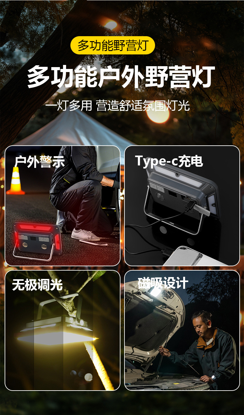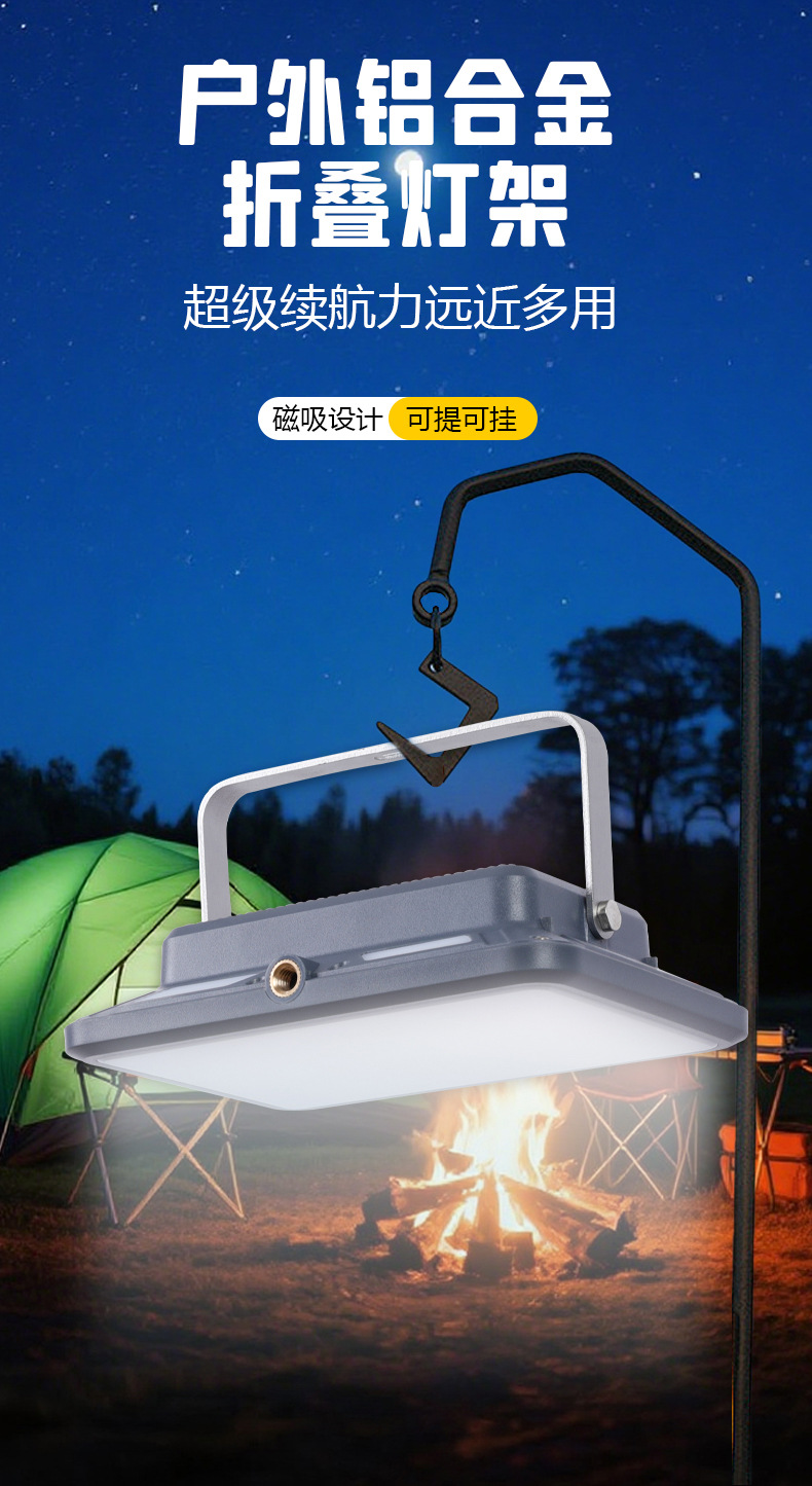 鋁合金大泛光山地野營燈高亮防水無極調光露營燈可手提磁吸工作燈