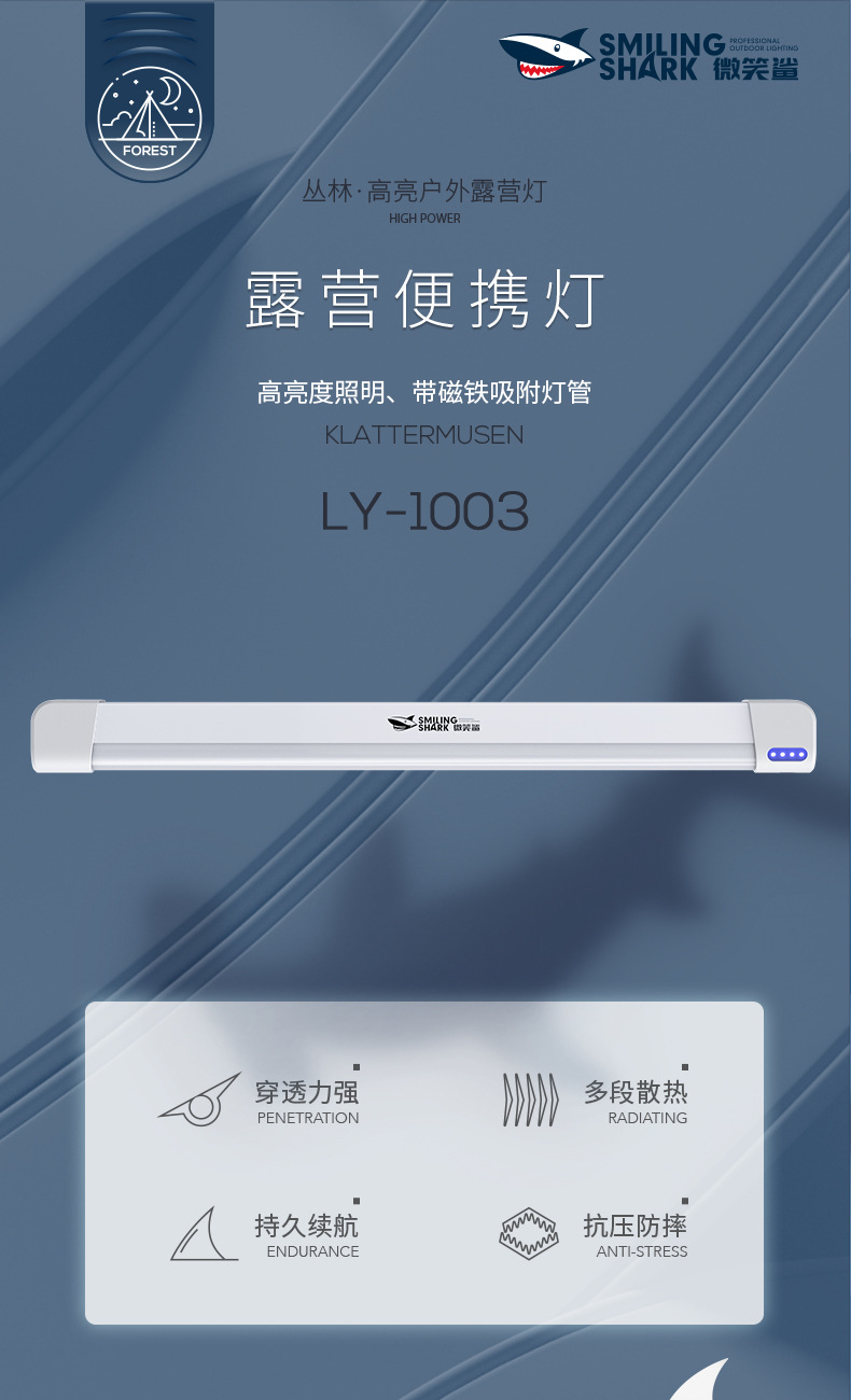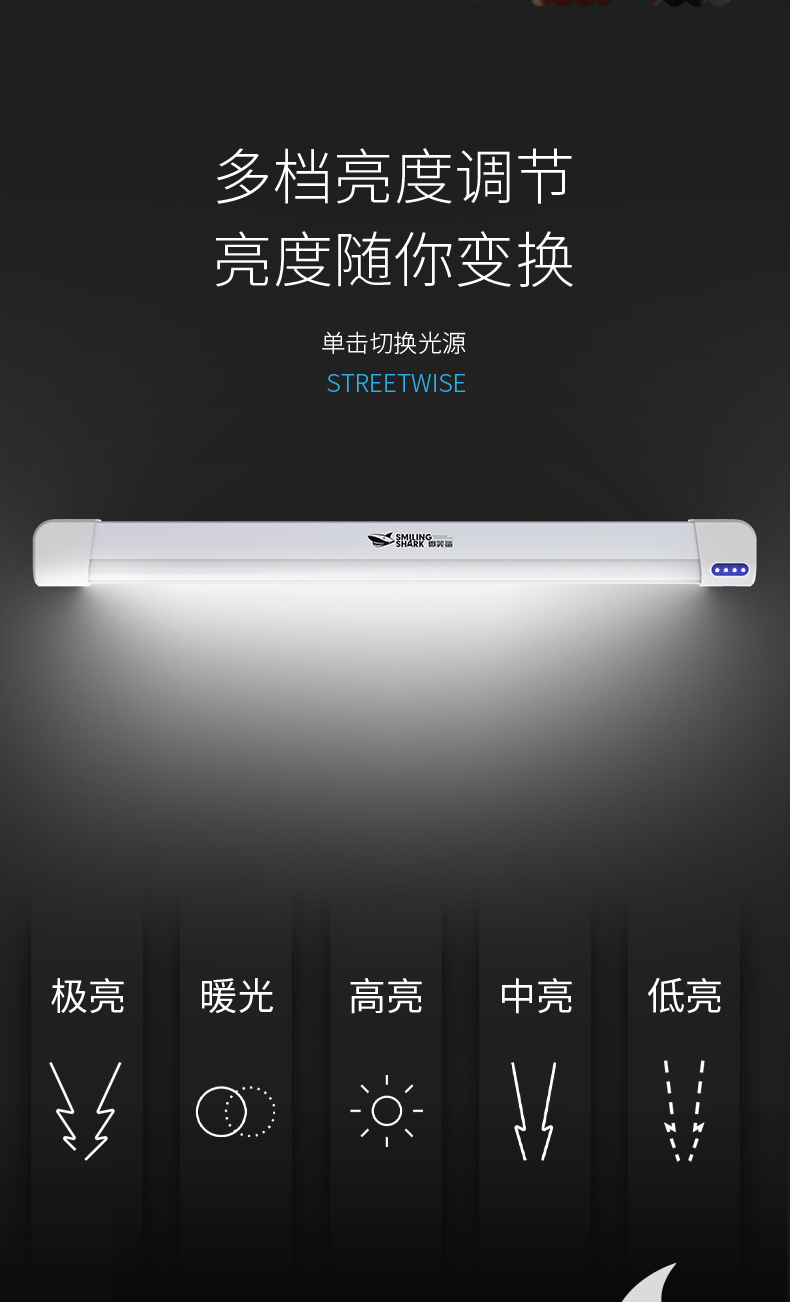 微笑鯊磁吸功能移動可攜式燈琯擺攤燈LED戶外照明露營燈可充電營地