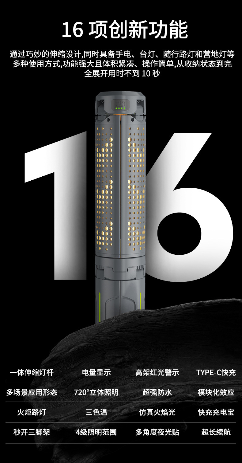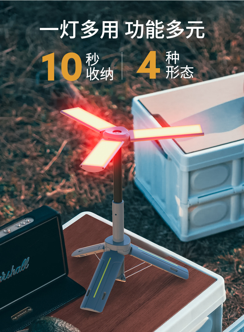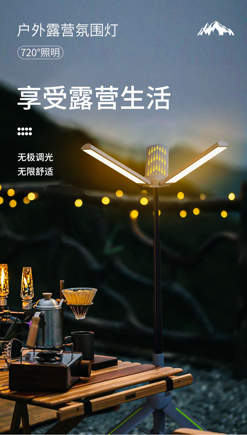 多功能三葉支架露營燈工作燈可充電手電筒長續航氛圍燈場地燈