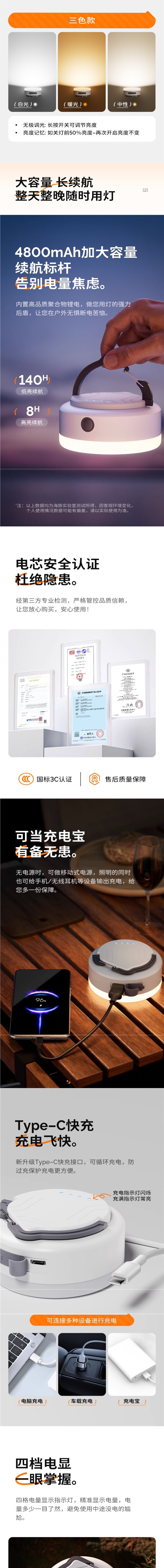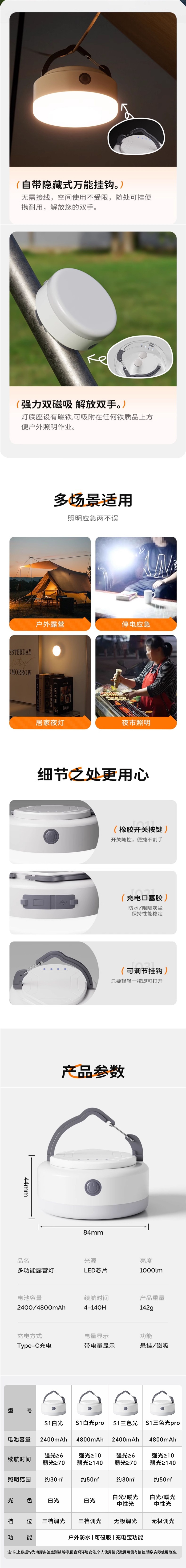 溫唯可攜式露營充電帳篷燈戶外照明燈泡超長續航掛燈應急超亮野
