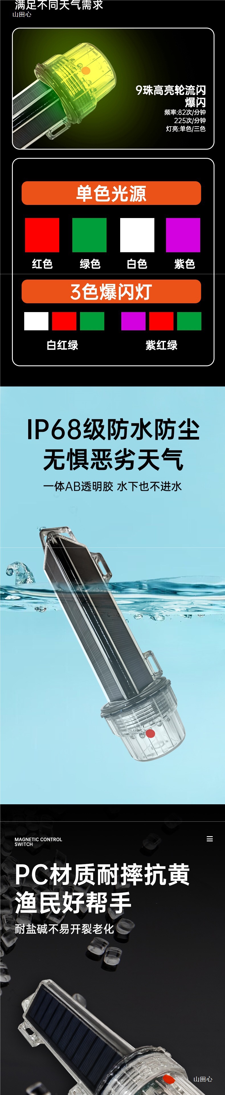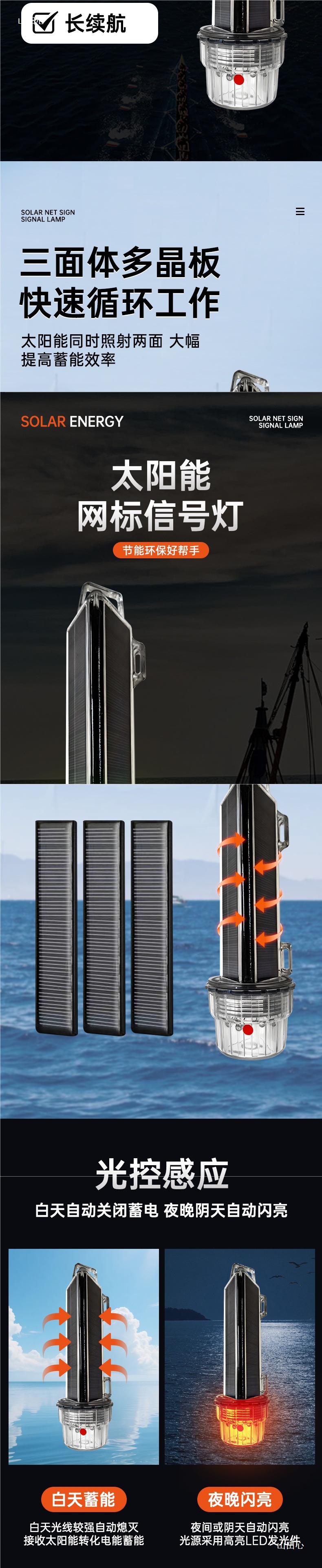 太陽能船用常亮三角網標燈夜間警示海上航行LED紅黃綠信號燈
