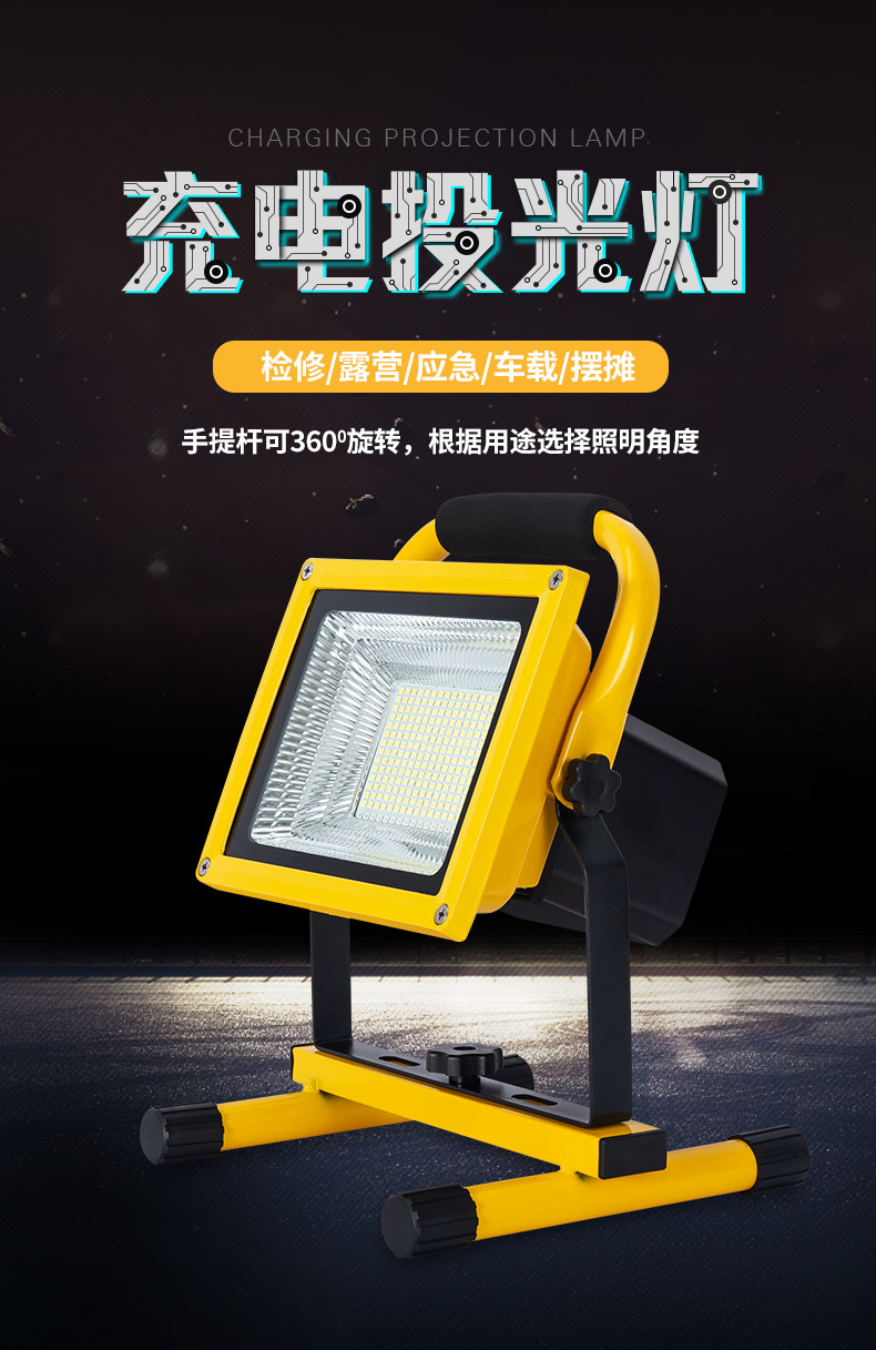 工地照明燈充電投光燈戶外應急LED露營野營強光超亮可攜式無線手提