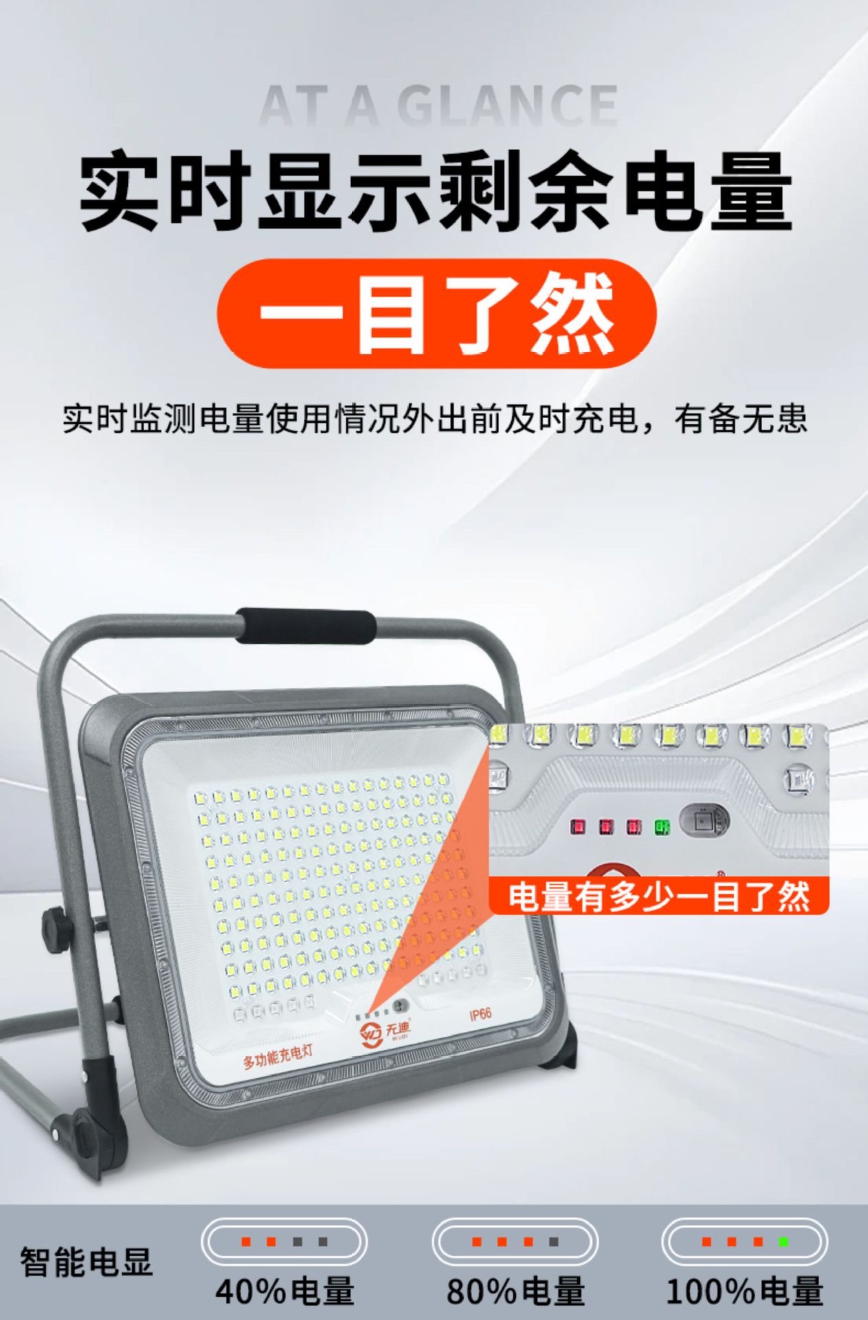 無迪充電投光燈戶外可攜式工地擺攤應急照明LED手提露營超亮工作燈