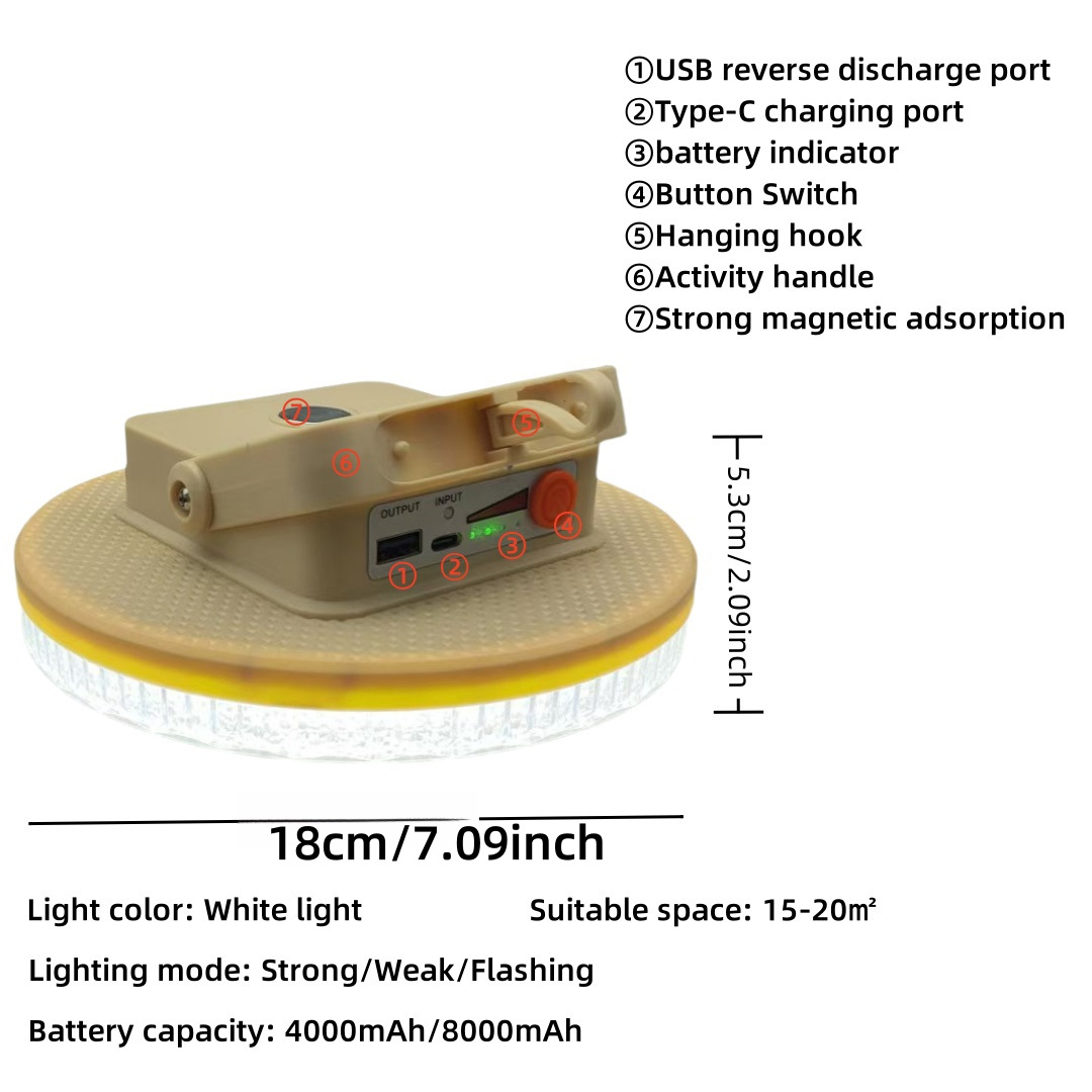 飛碟露營燈超亮強光充電磁吸水晶地攤燈可攜式隨身懸掛