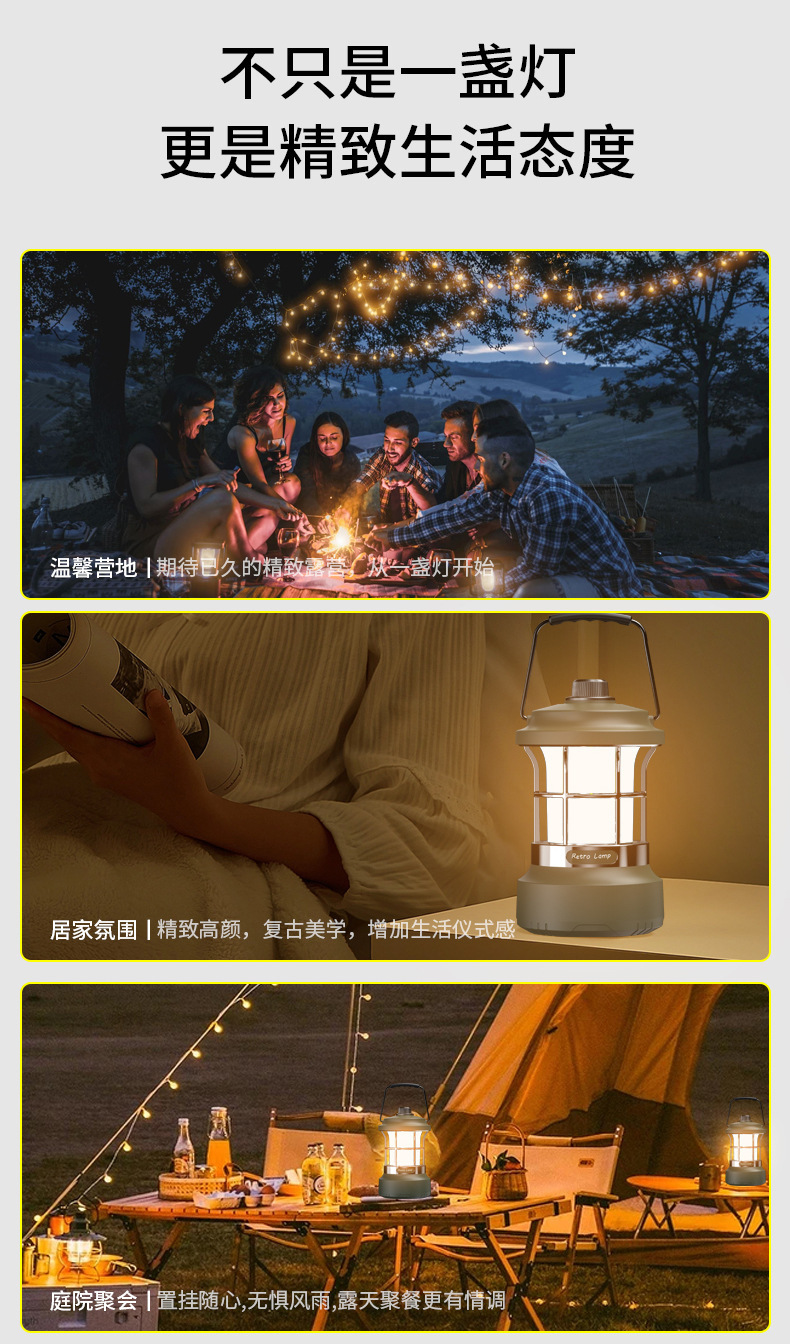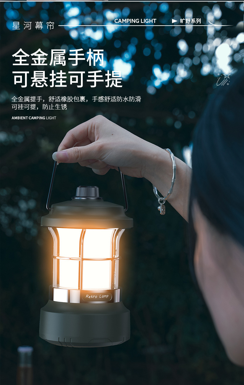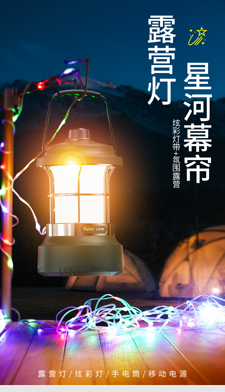 多功能復古馬燈串燈露營燈手提燈戶外照明燈無極調光充電帳篷燈