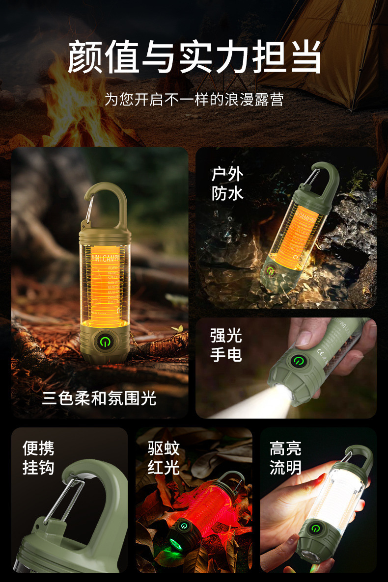 led野營燈可攜式type-c充電隨身燈氛圍長續航防水戶外手電筒防