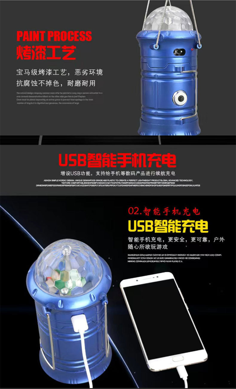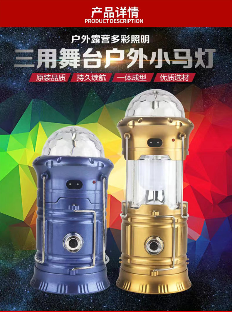 可攜式露營手提星空馬燈旋轉舞台燈可充電家用伸縮應急野營燈