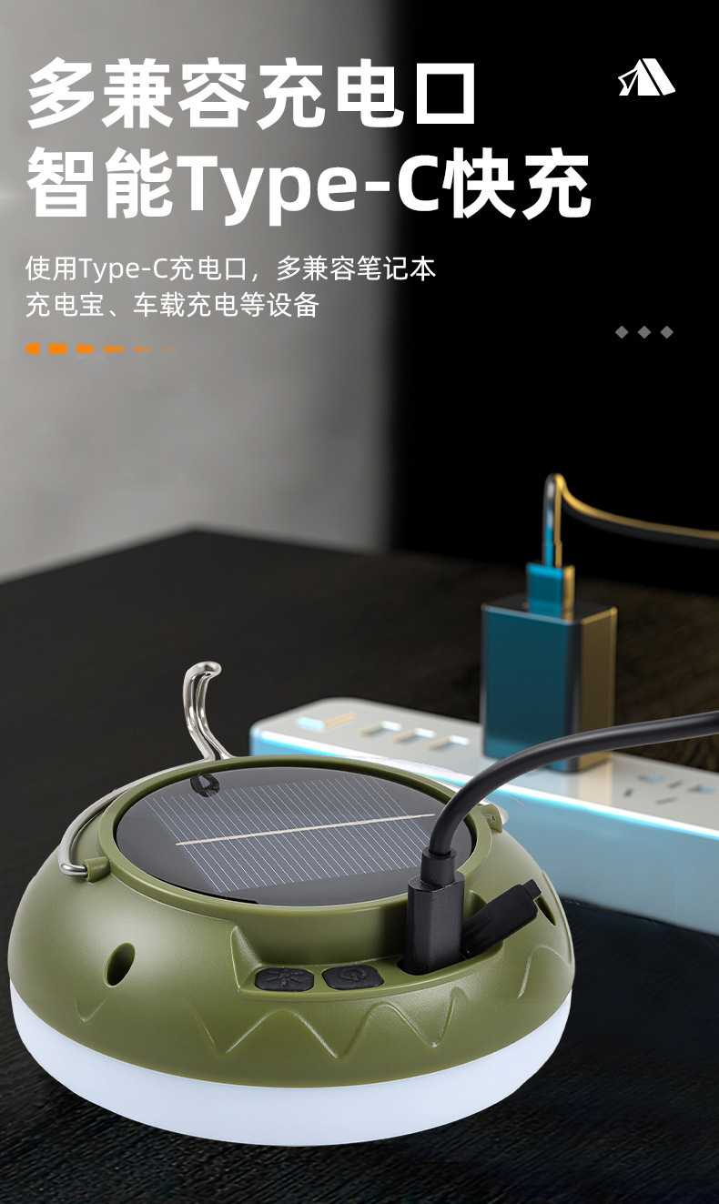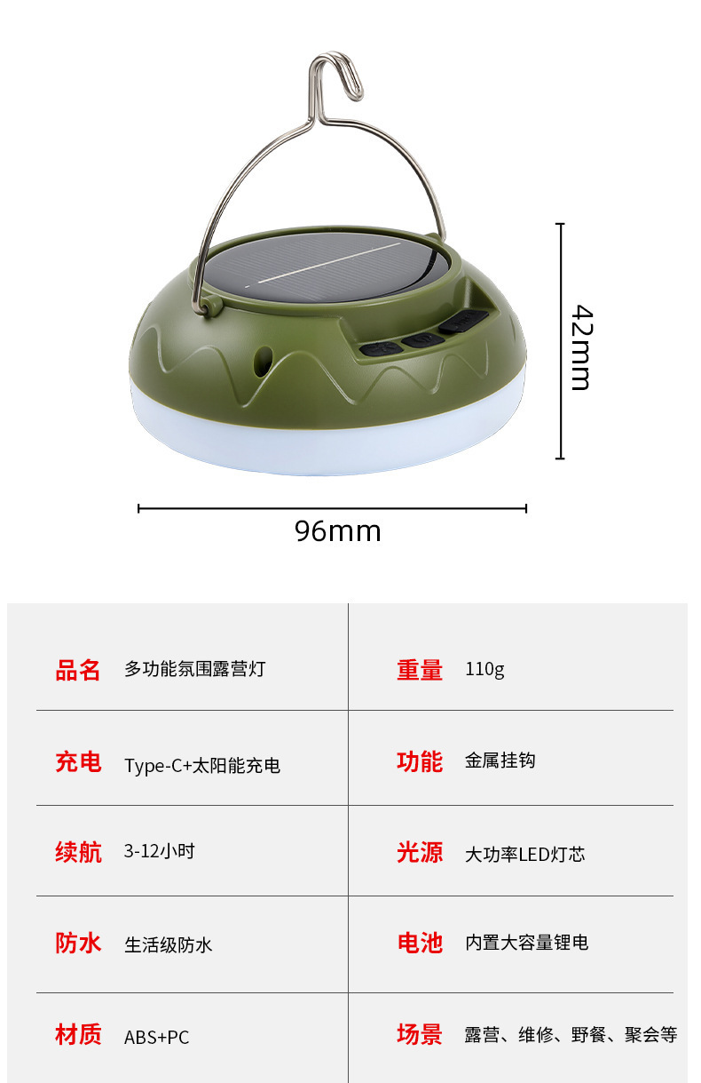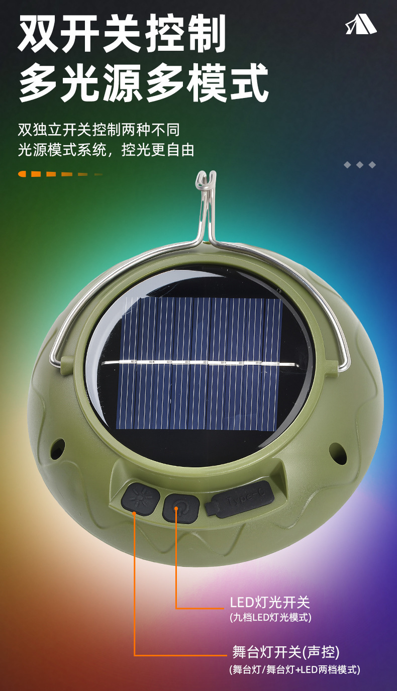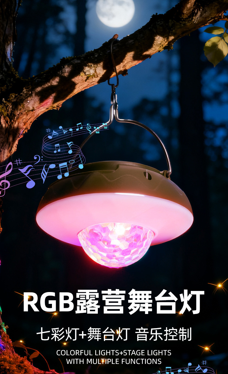 太陽能充電舞台燈戶外七彩露營燈多功能可攜式掛鉤氛圍燈野營帳篷