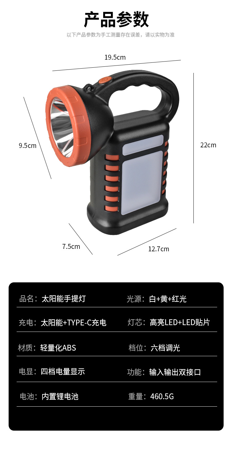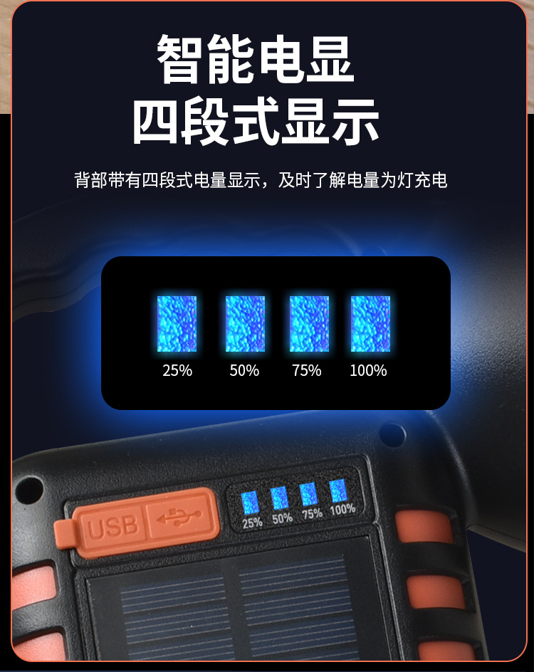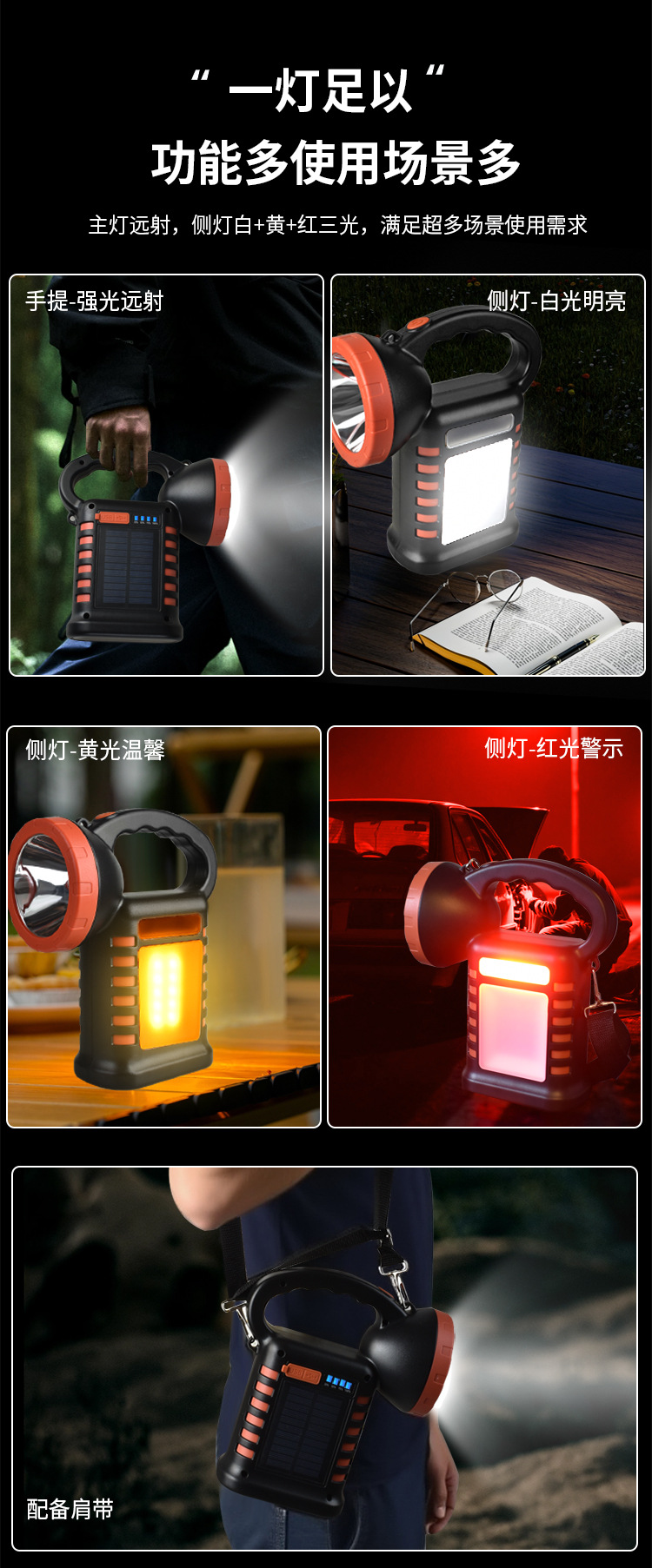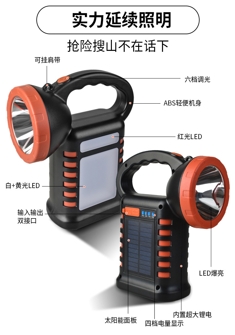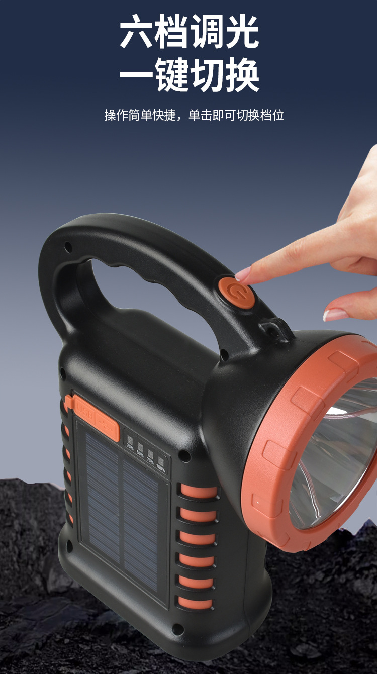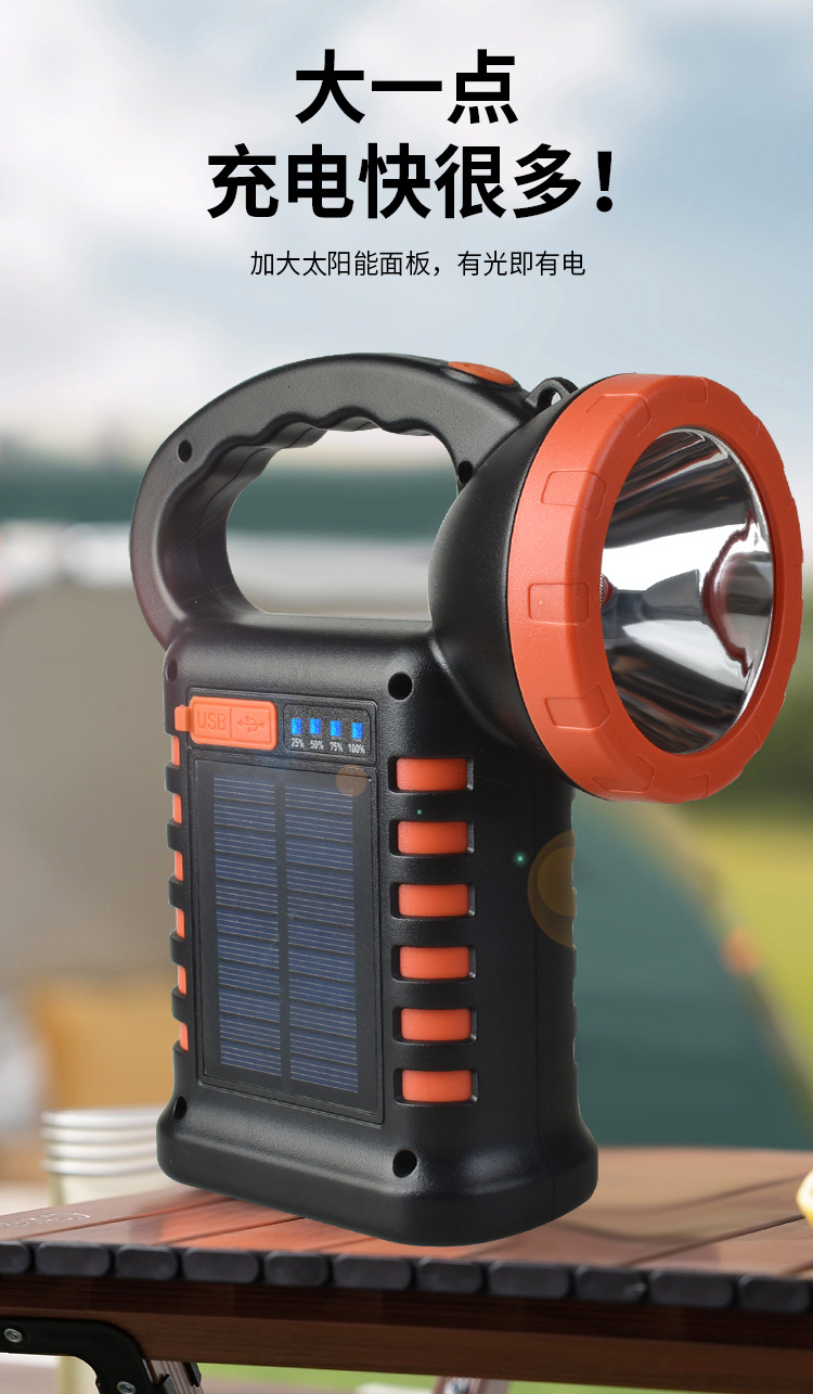 新款太陽能手提燈多功能工作燈快充戶外露營燈警示燈可攜式超亮