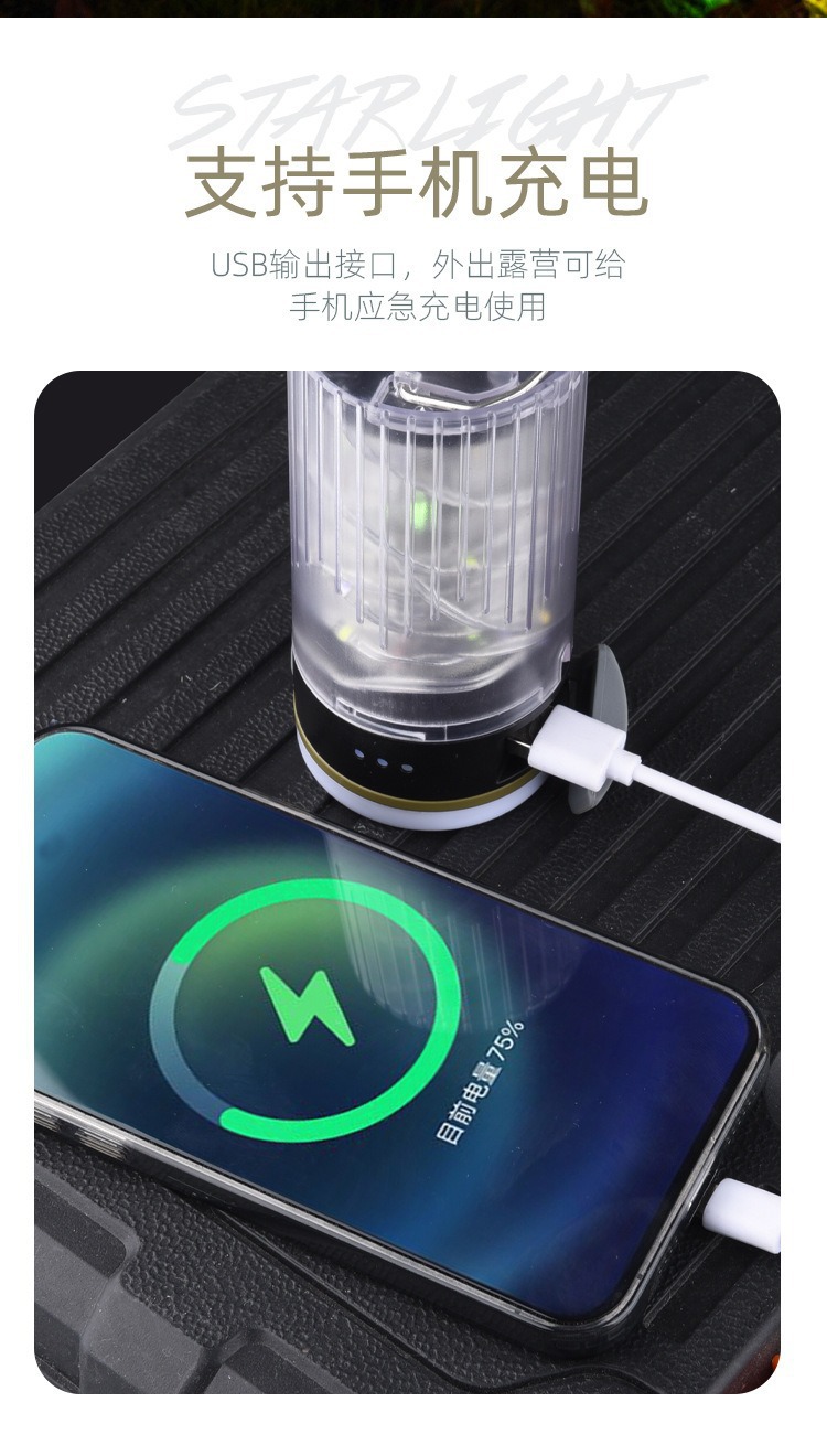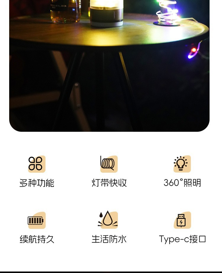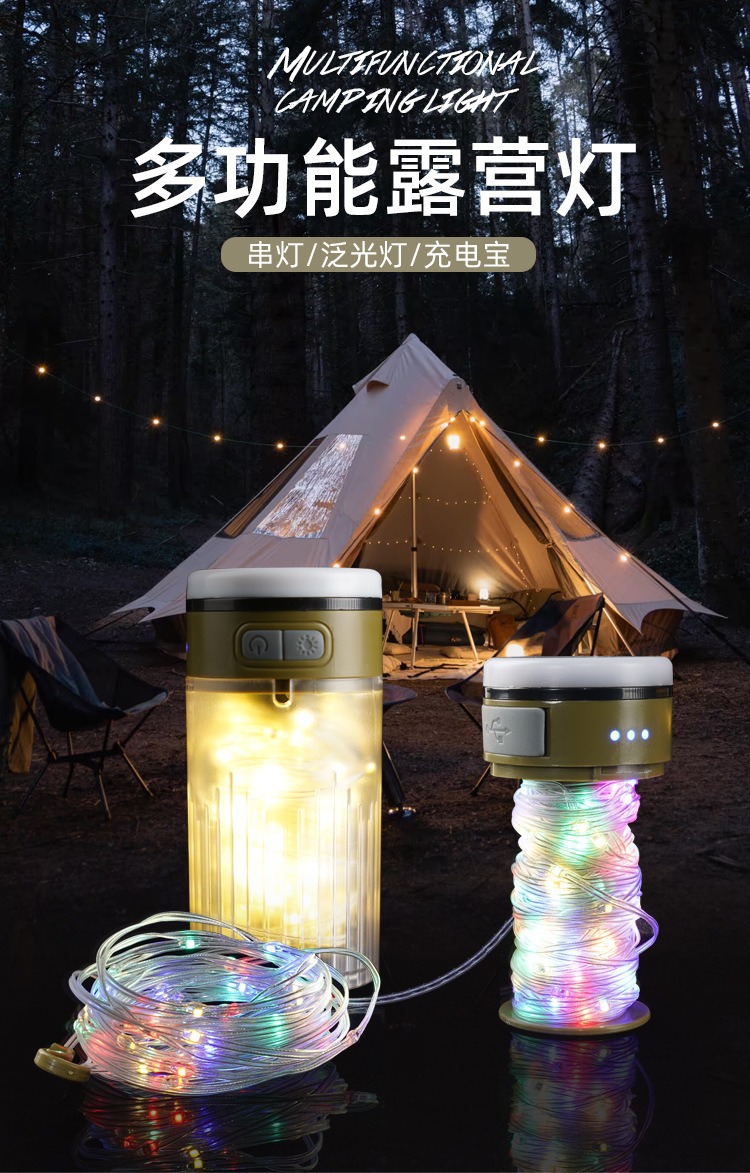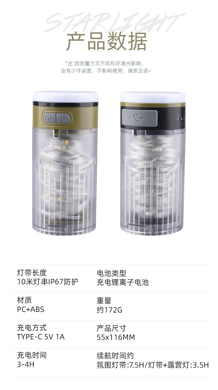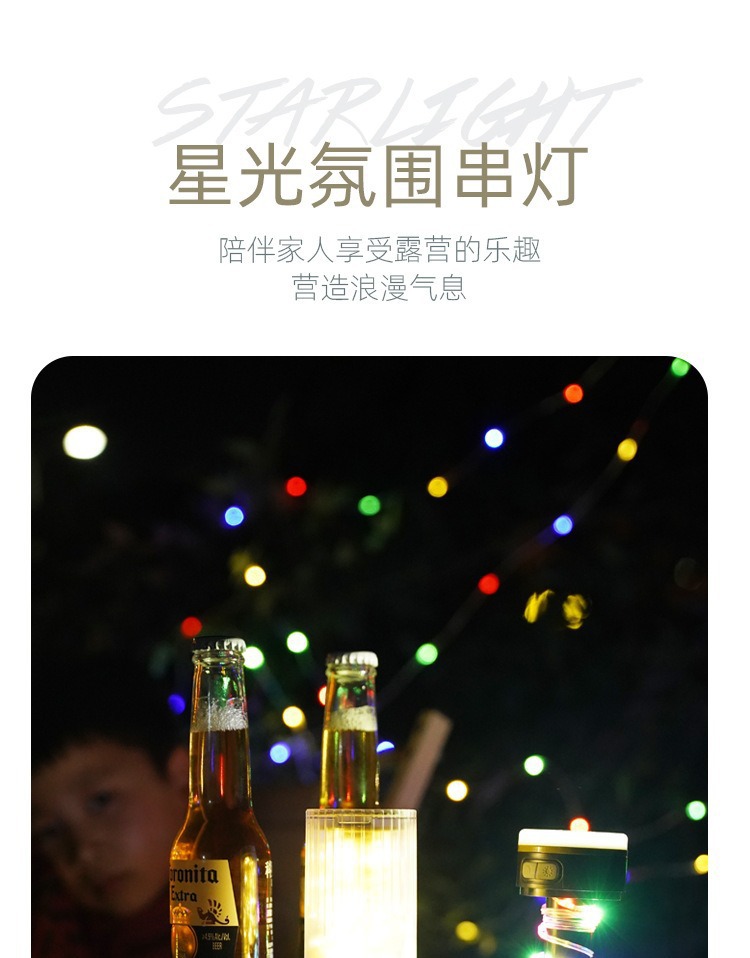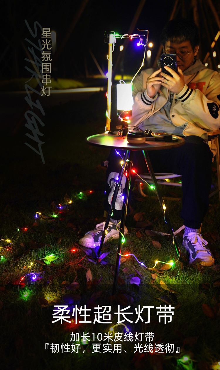 星空露營燈戶外串燈七彩氛圍燈帳篷營地燈充電超長續航裝飾燈