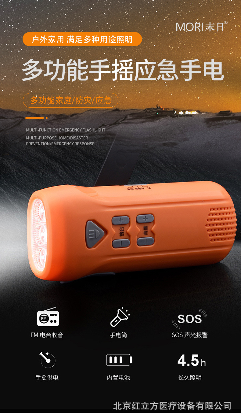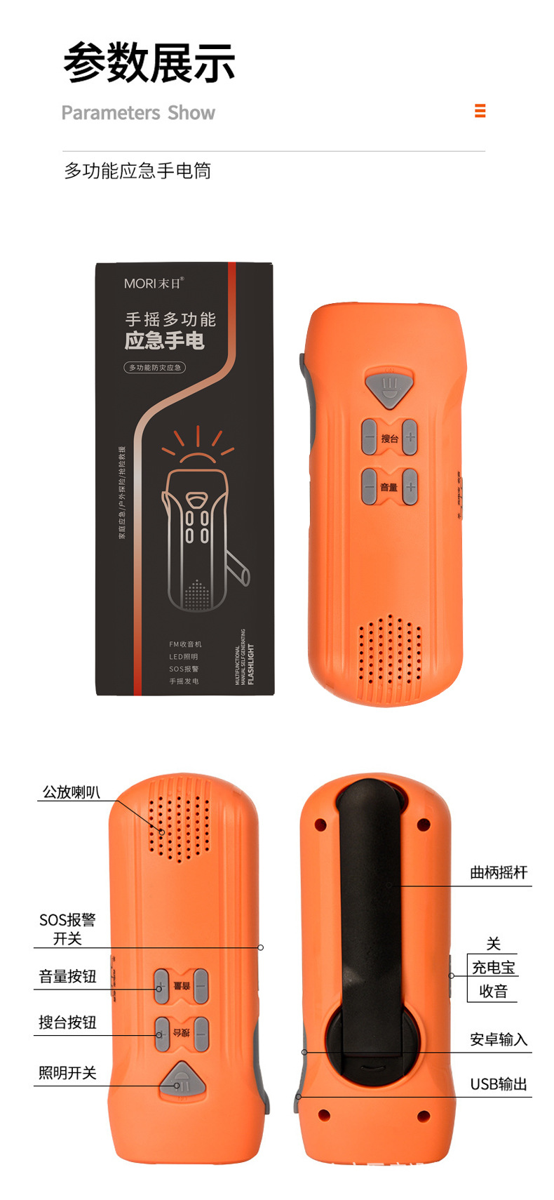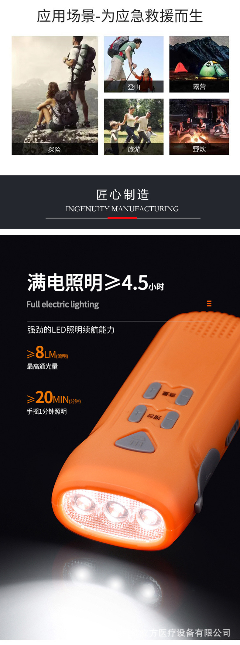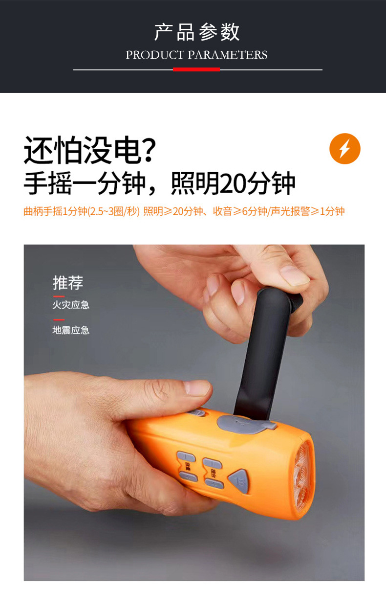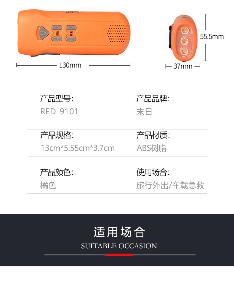 紅立方 多功能手搖髮電手電帶收音機聲光報警功能 RED-9101