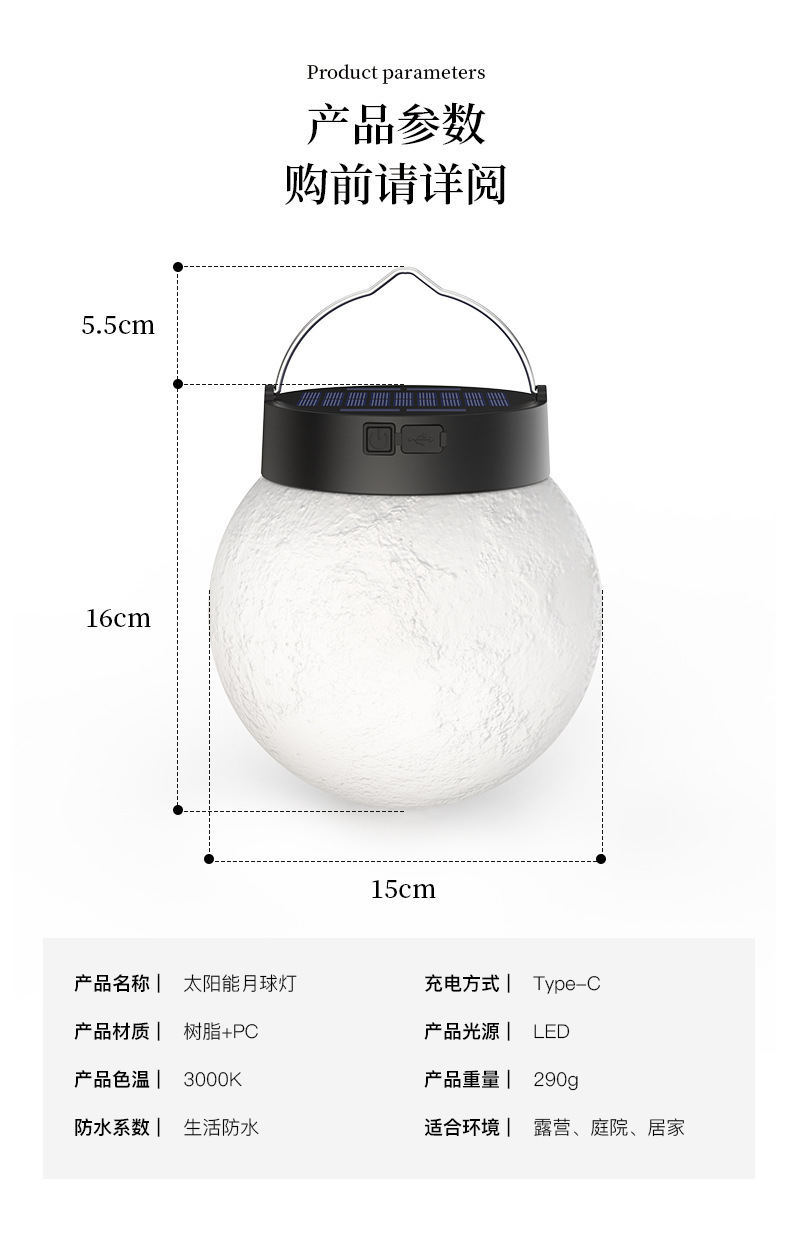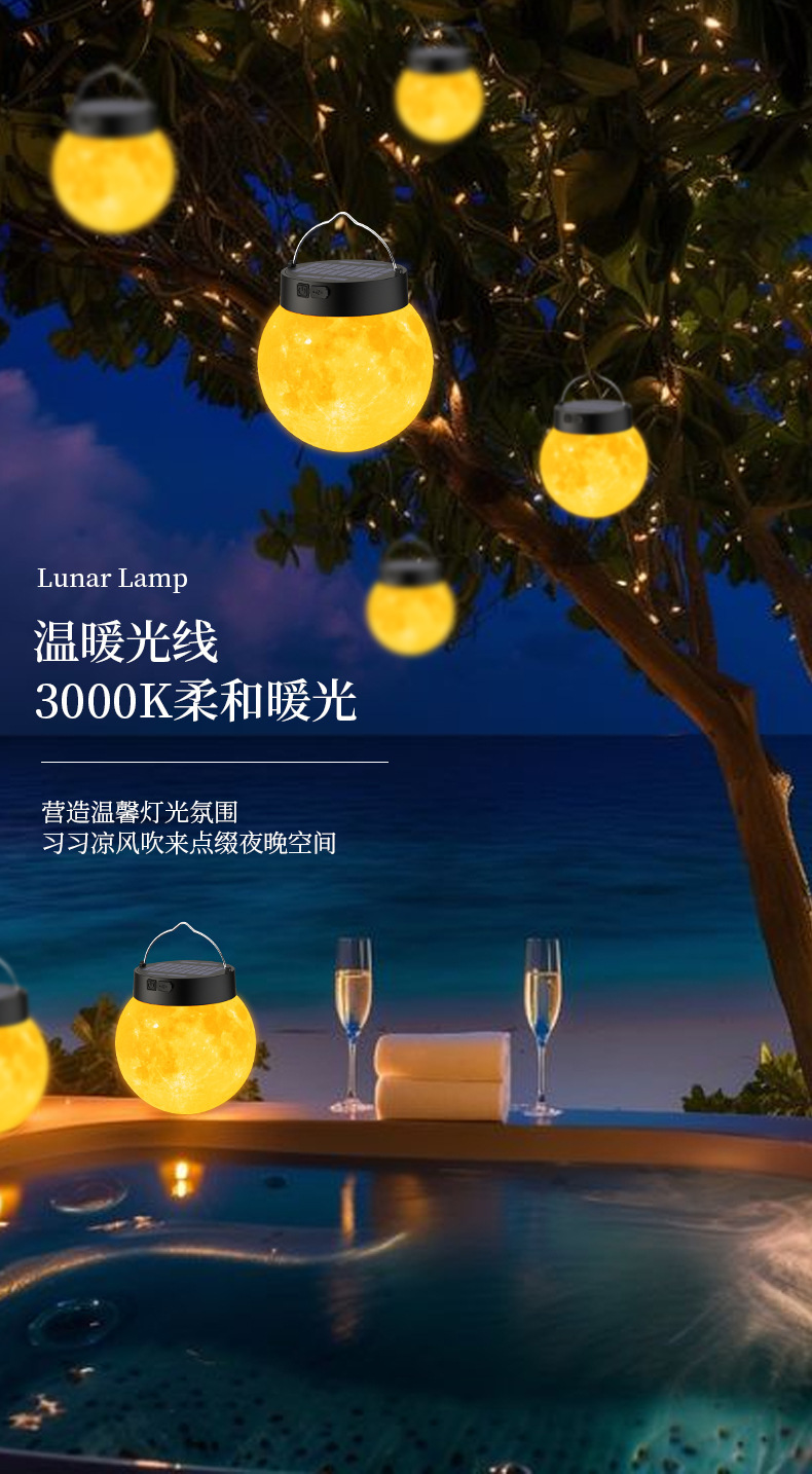 太陽能月球燈戶外掛燈防水庭院燈陽台氛圍燈露營裝飾燈別墅草坪燈
