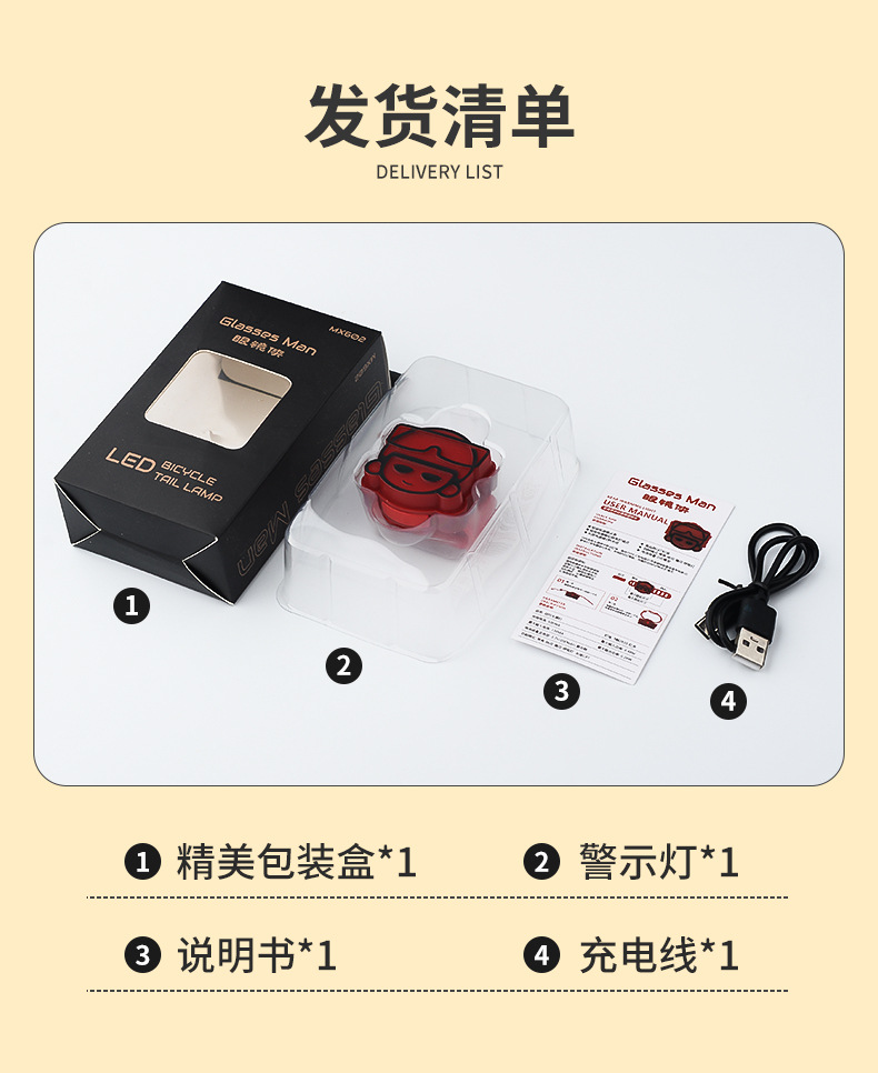 眼鏡俠自行車尾燈高亮夜間警示燈山地車充電強光夜騎閃光燈騎行燈