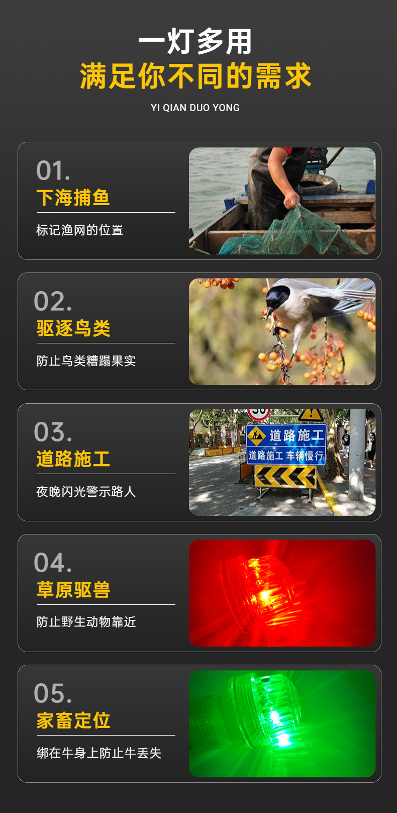 高亮度三色燈信號燈漁船太陽能燈浮標網標燈常亮閃光防水船用閃燈