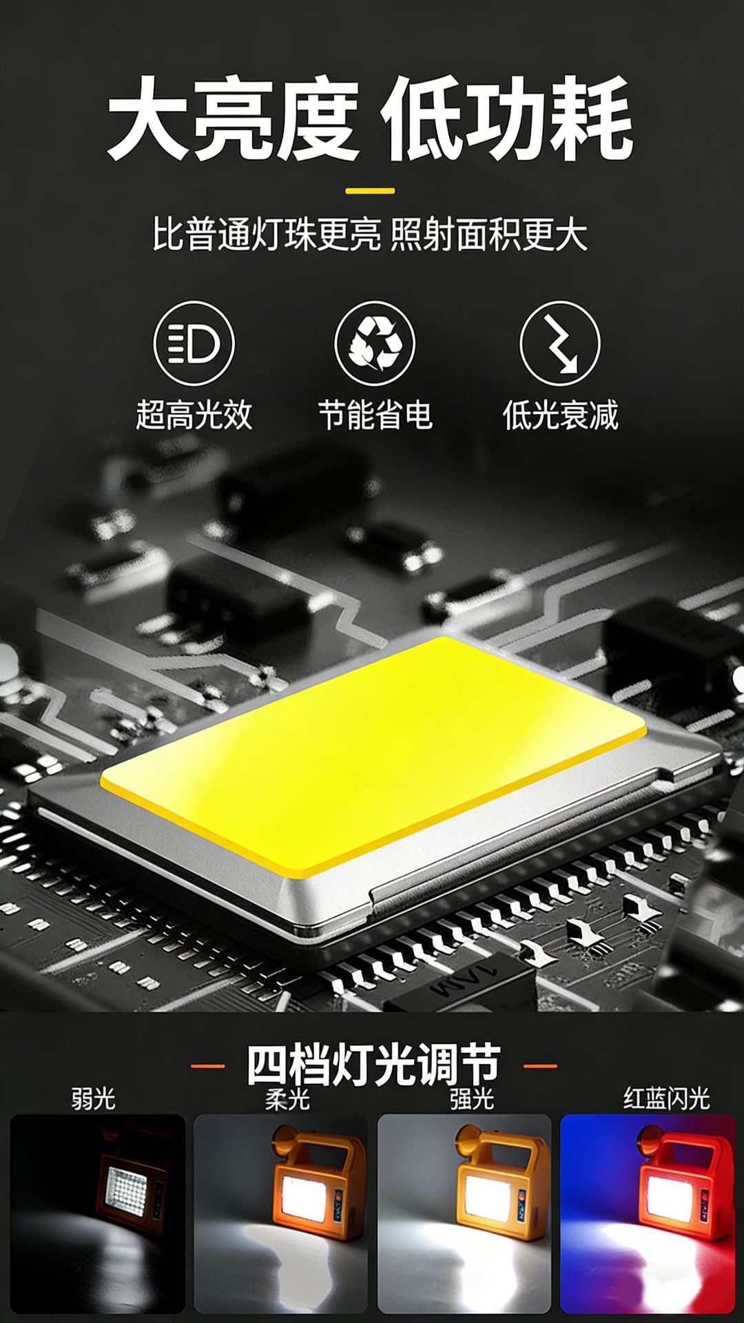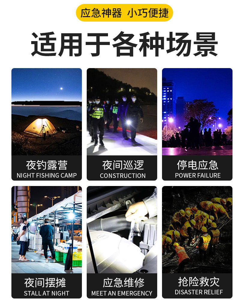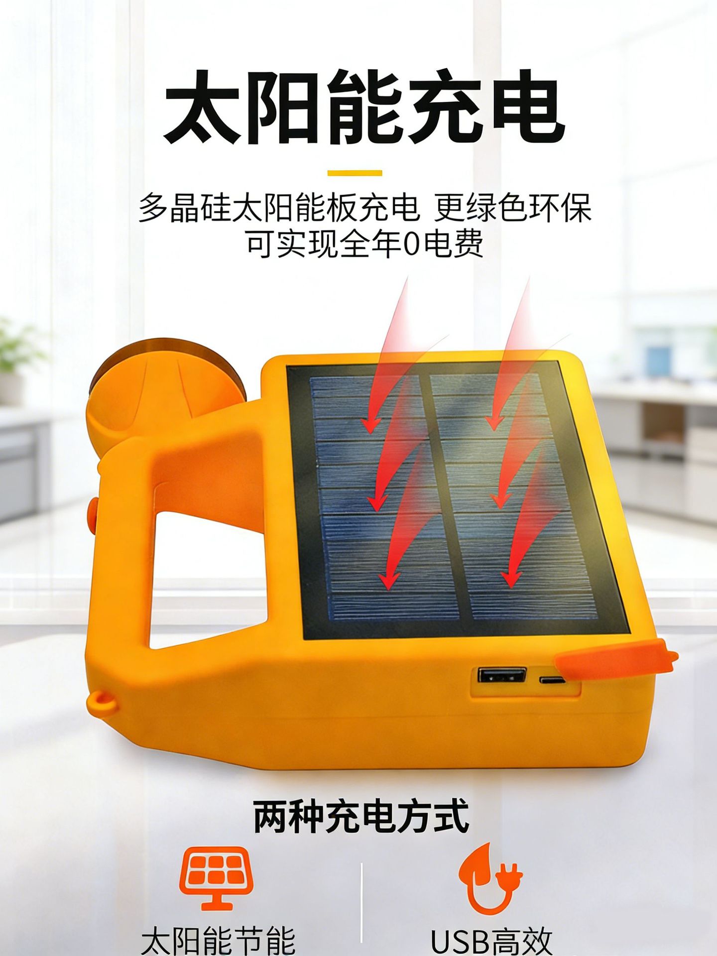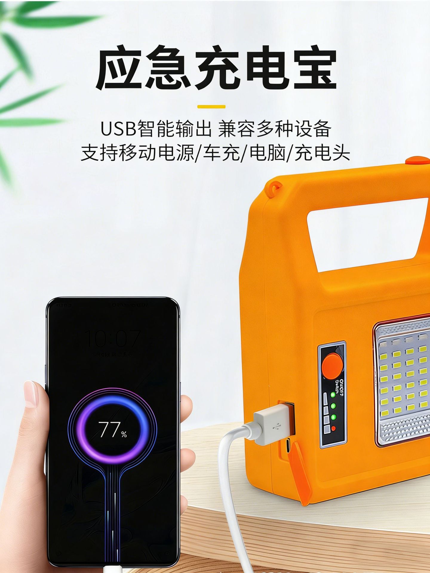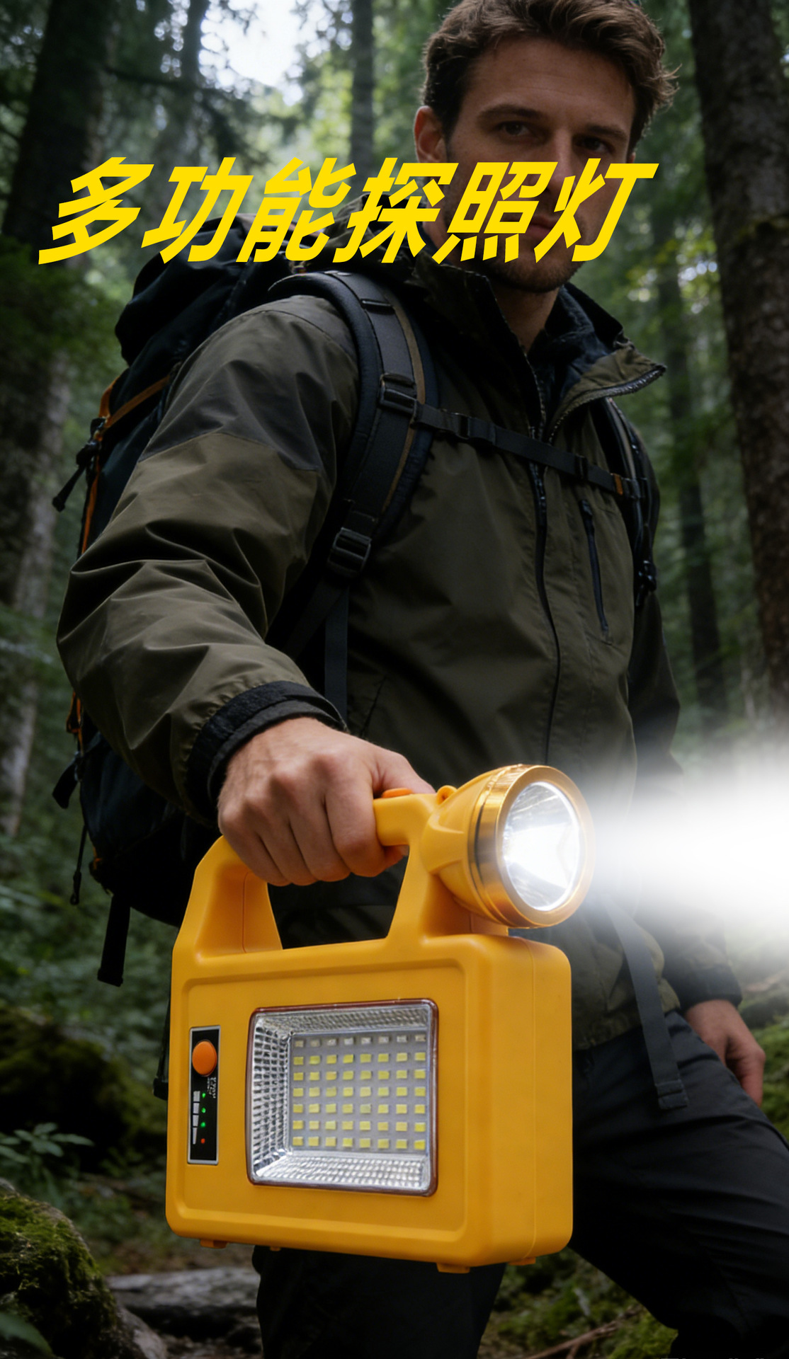 太陽能強光手提工作燈手電筒超亮充電探照燈夜市擺地攤照明露營燈