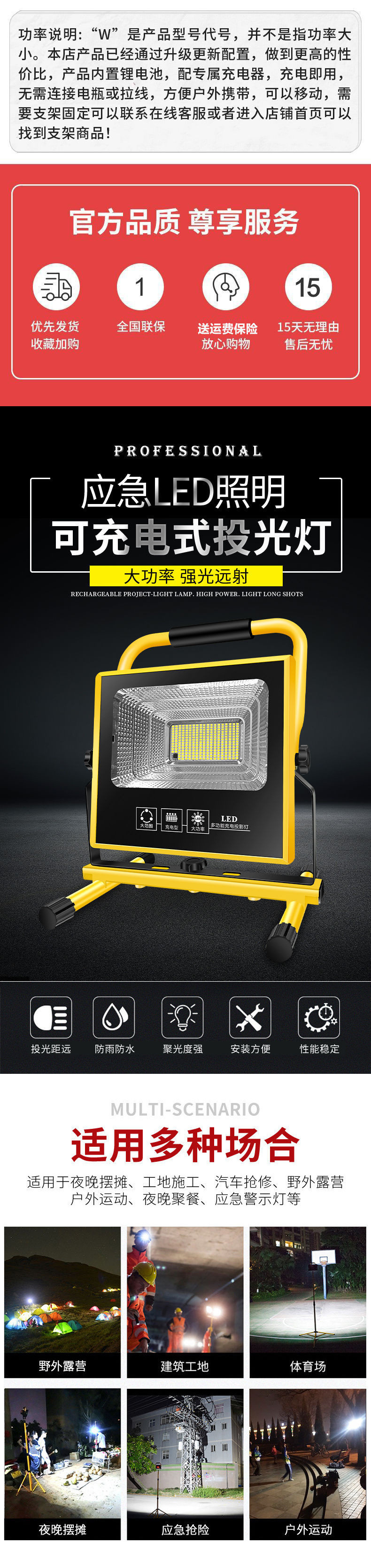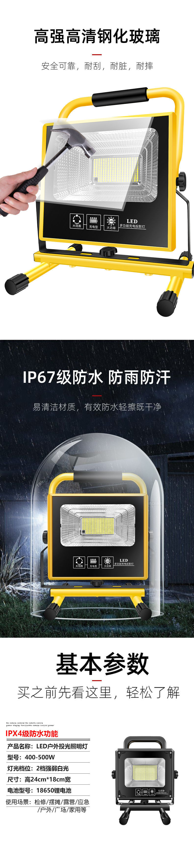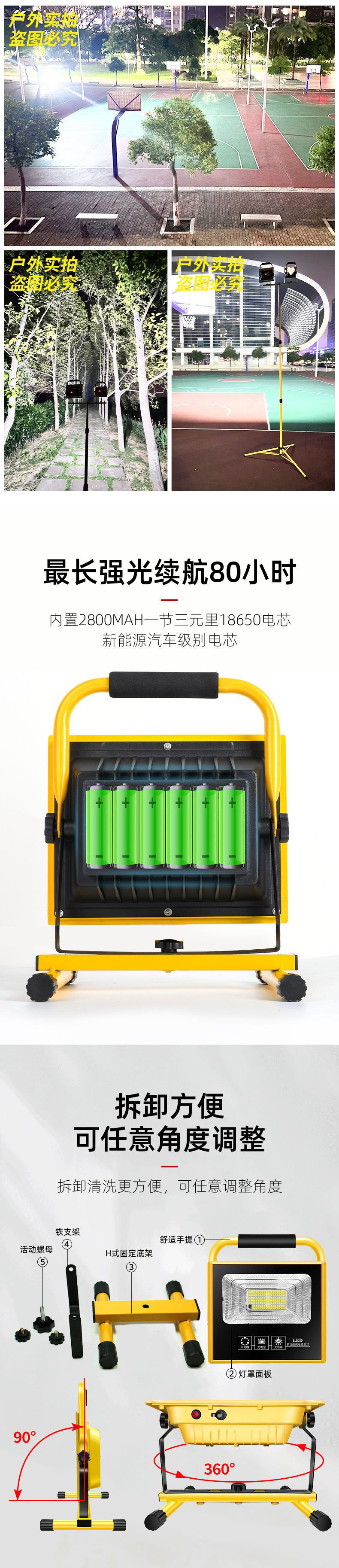 應急充電投光燈強光露營燈夜市停電戶外工地照明燈