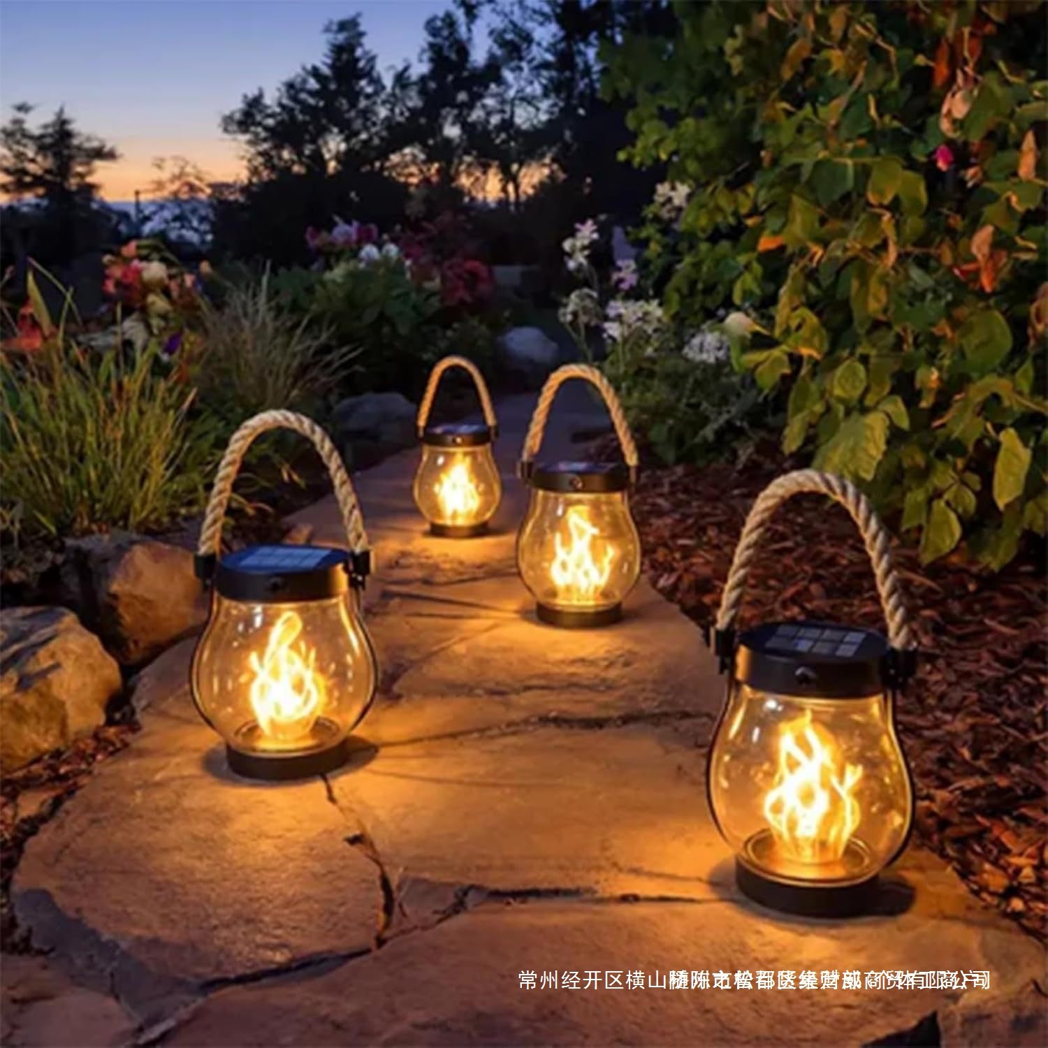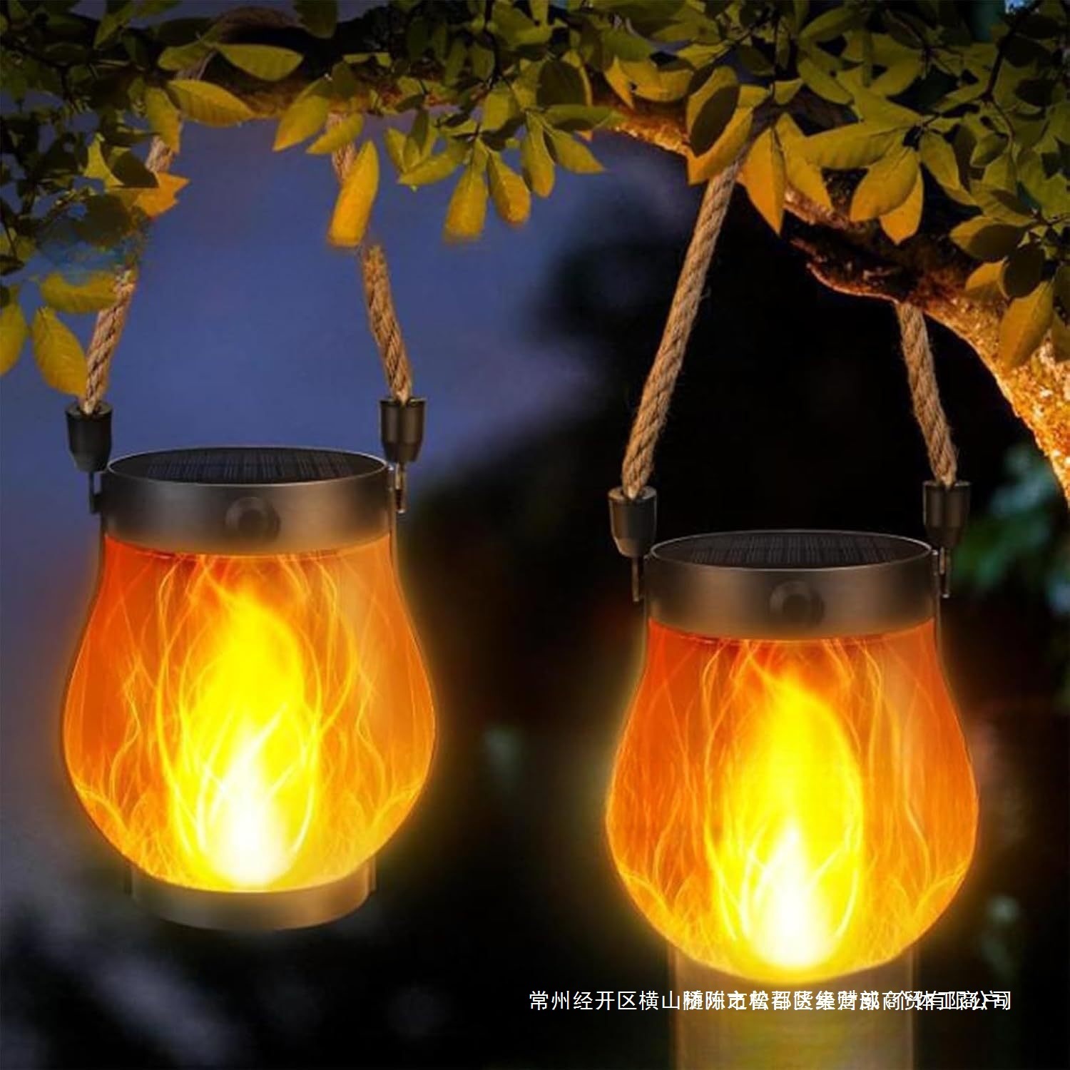 爆品太陽能燈籠戶外燈舞動火焰太陽能燈麻繩懸掛火焰燈籠掛件
