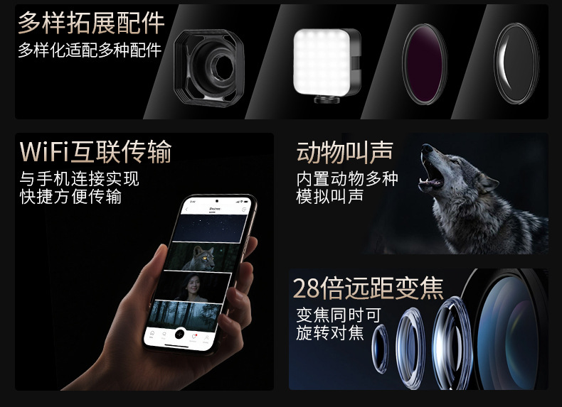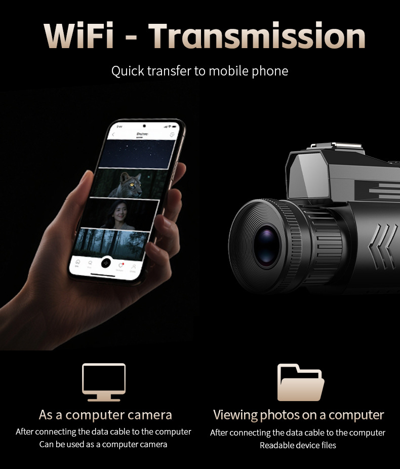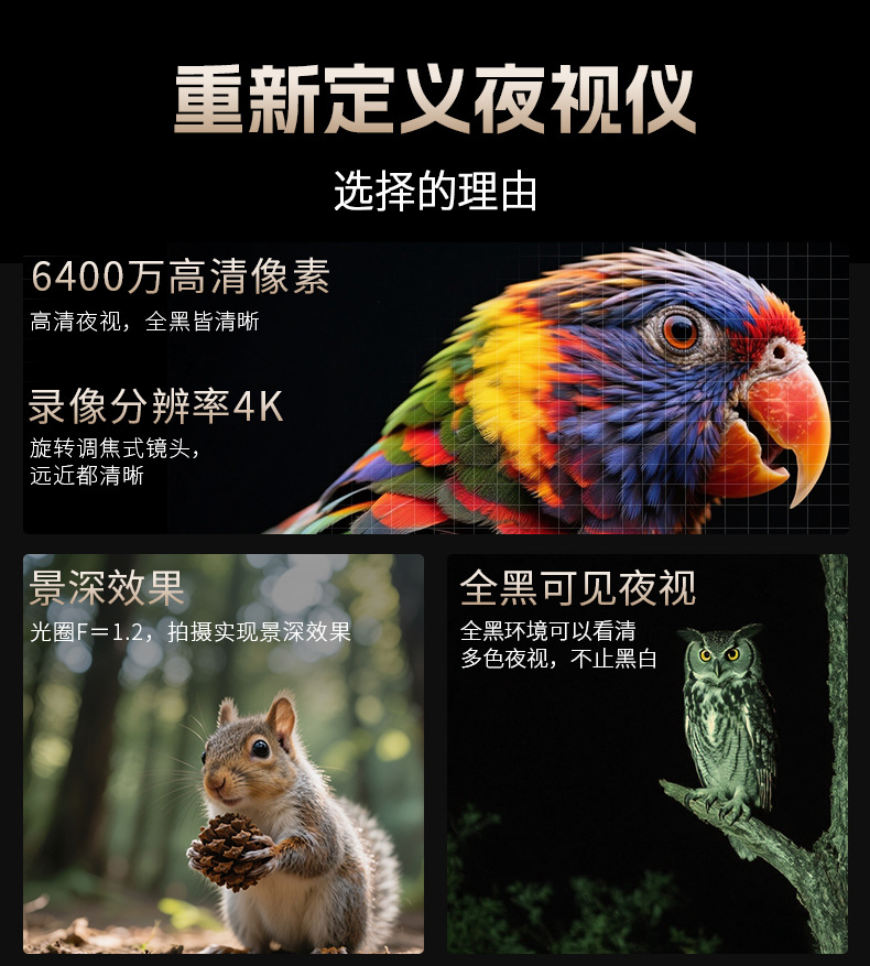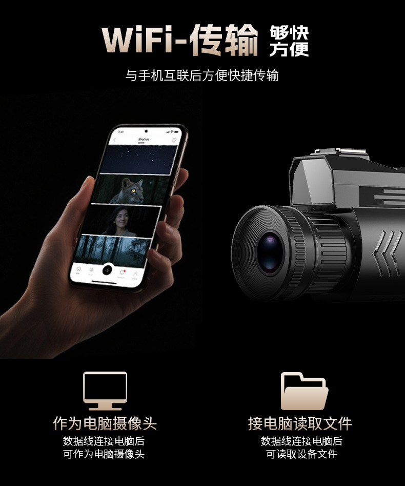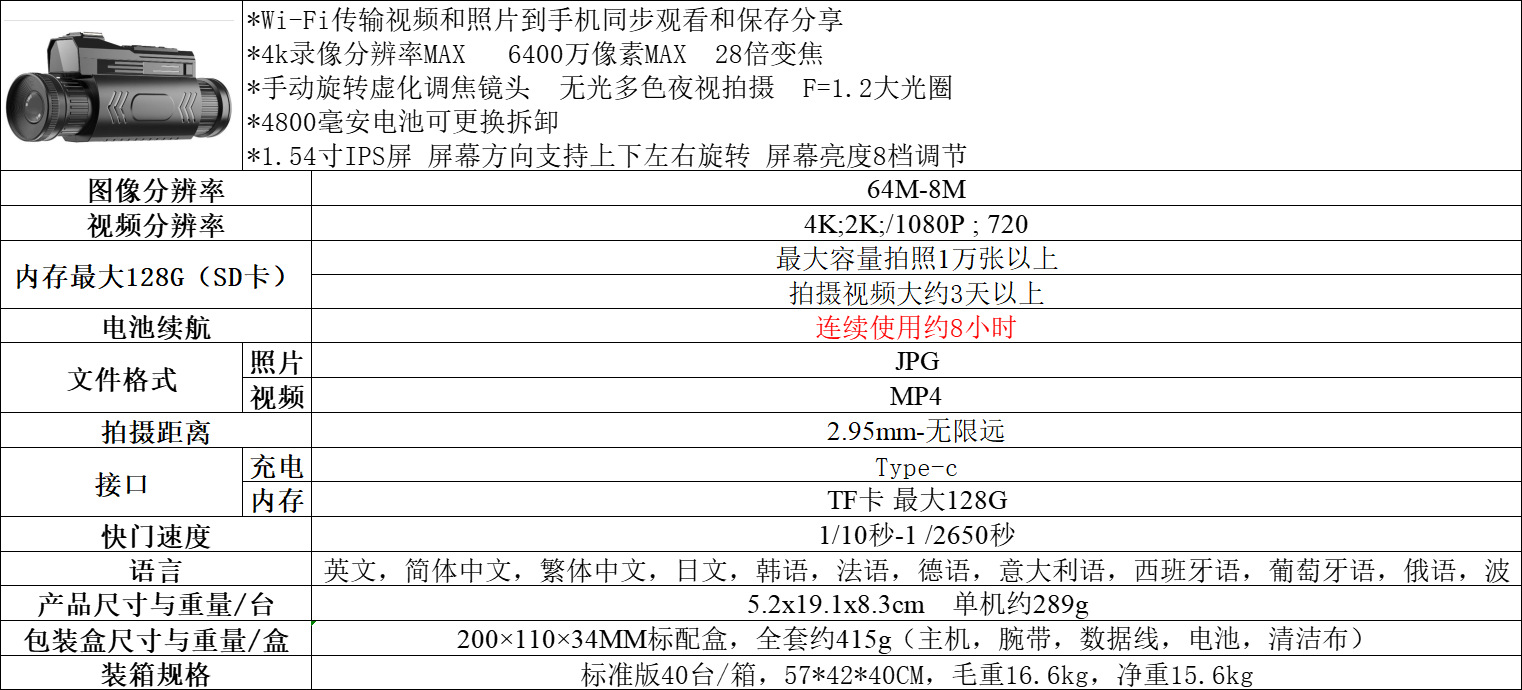 4k高清D12紅外線夜視儀 全黑戶外狩獵打野拍照錄像WiFi單筒望遠鏡