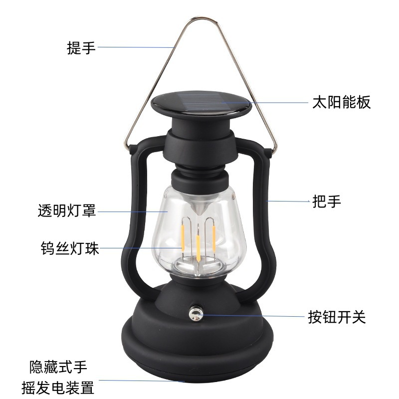 太陽能復古馬燈 手搖髮電手提野營燈usb充電帳篷燈家用應急露營燈