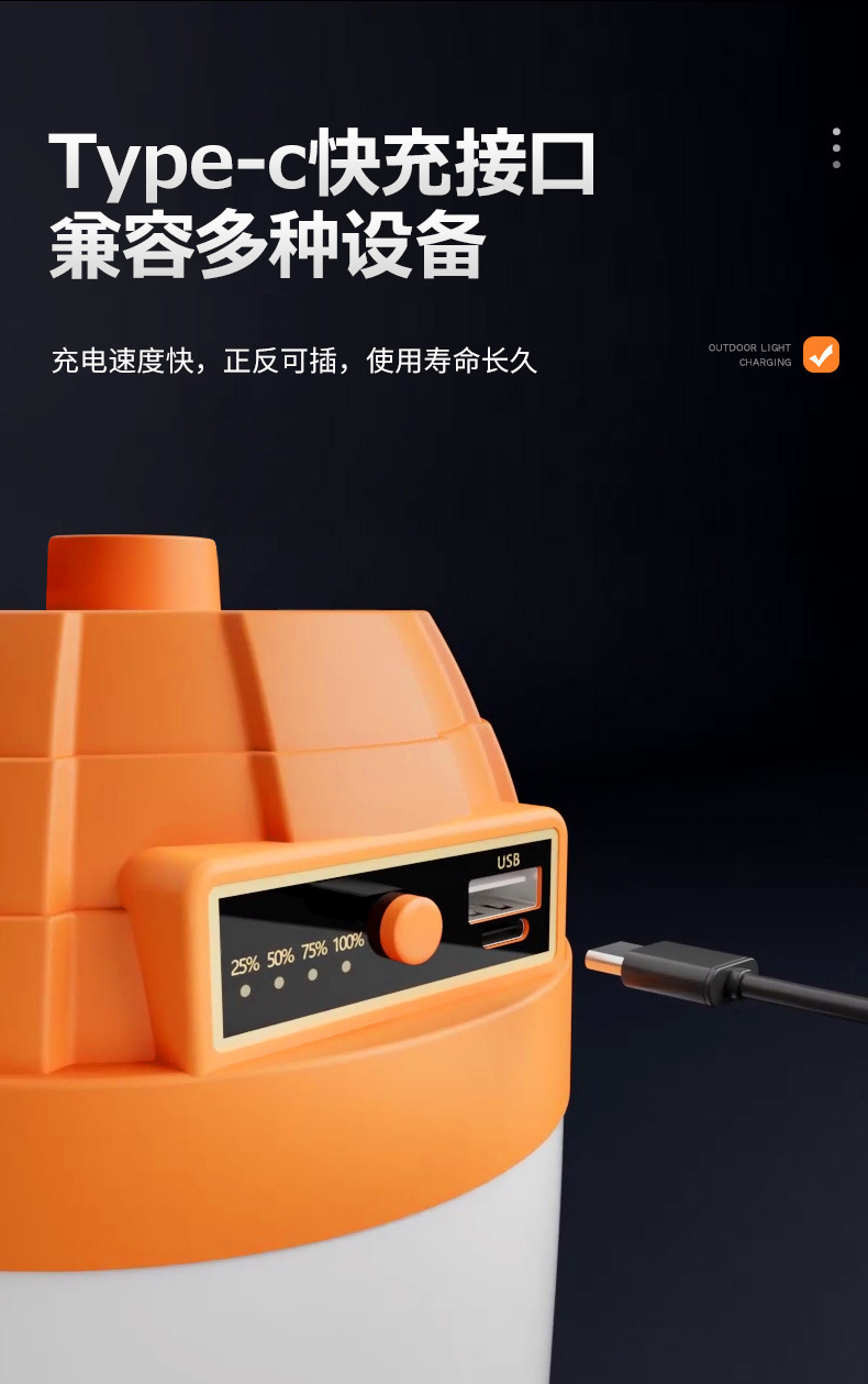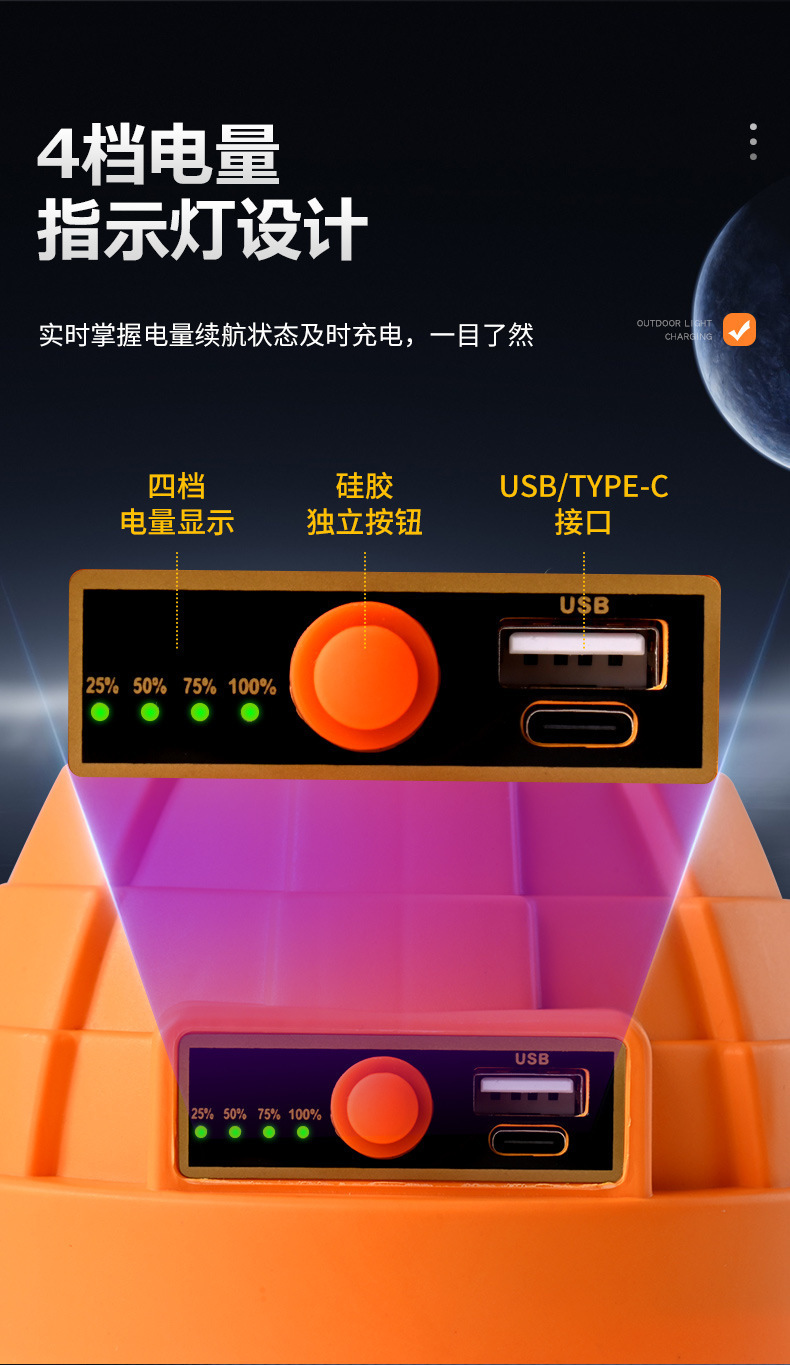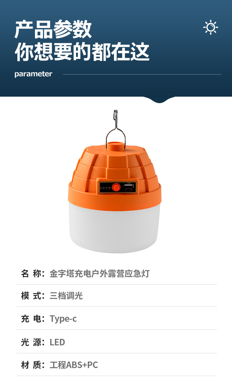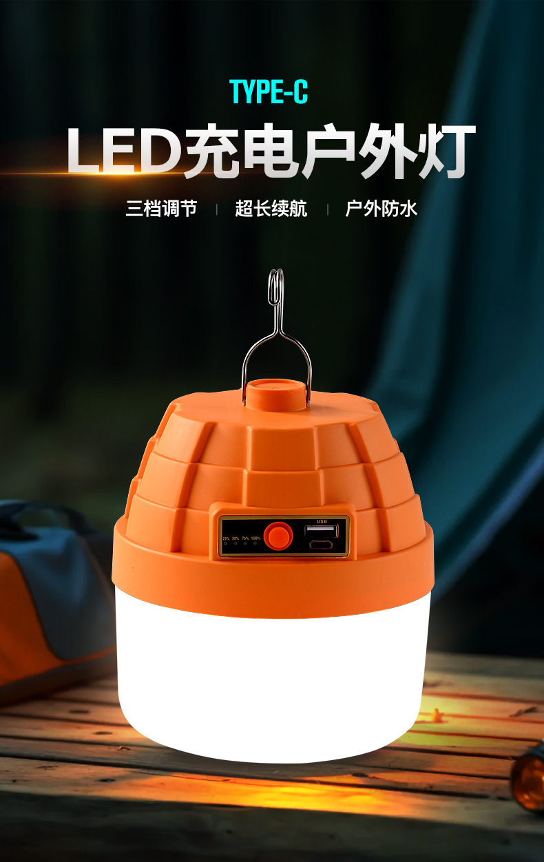 LED露營充電燈 新款金字塔充電燈泡野營長續航超亮夜市擺攤燈