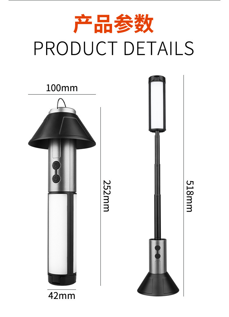 戶外多功能伸縮露營燈調節270度落地補光氛圍燈高亮照明強光手電
