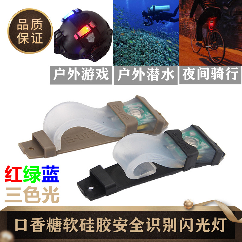 戶外騎行安全識別燈戰術頭盔燈紅綠藍三色光求生信號燈頻閃燈防水