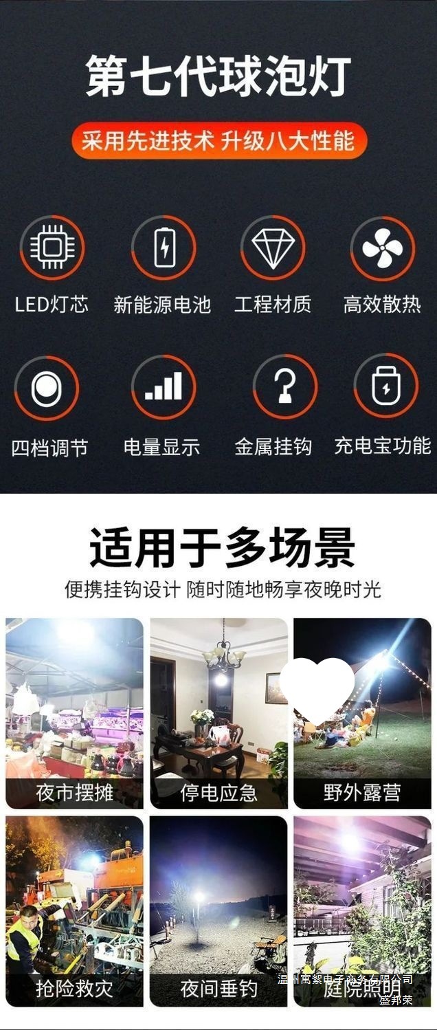 耐用燈泡夜市擺攤地攤燈無線移動式燈露營家用停電應急室外照明燈