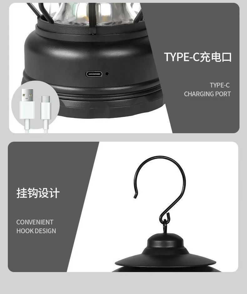 戶外LED露營燈帳篷燈野營氛圍燈復古馬燈營地照明續航 掛式手提燈