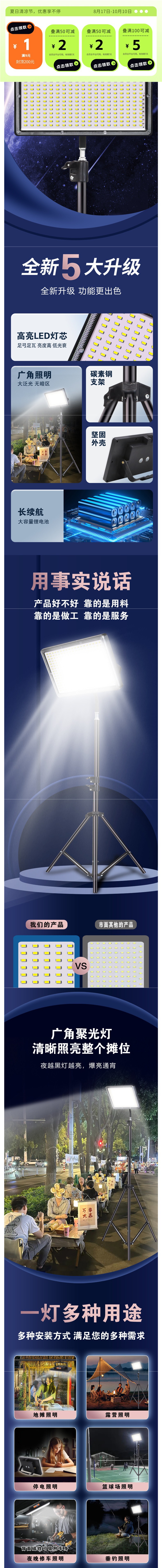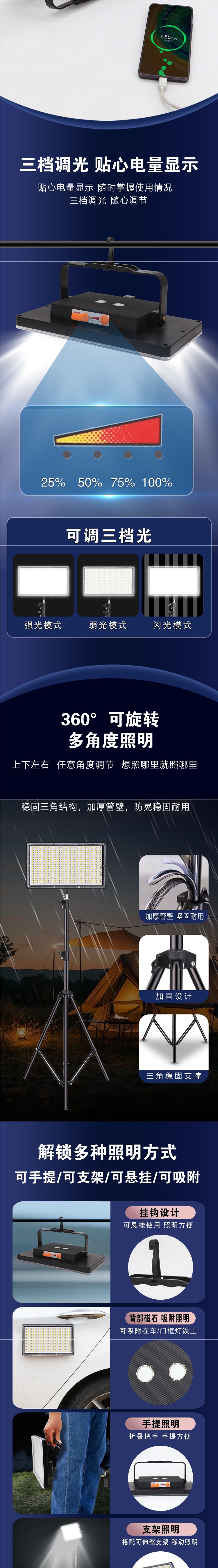 擺攤夜市燈充電應急燈補光燈移動戶外照明強光支架野外露營燈