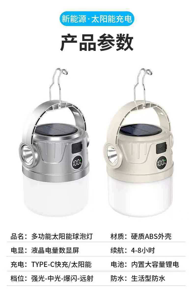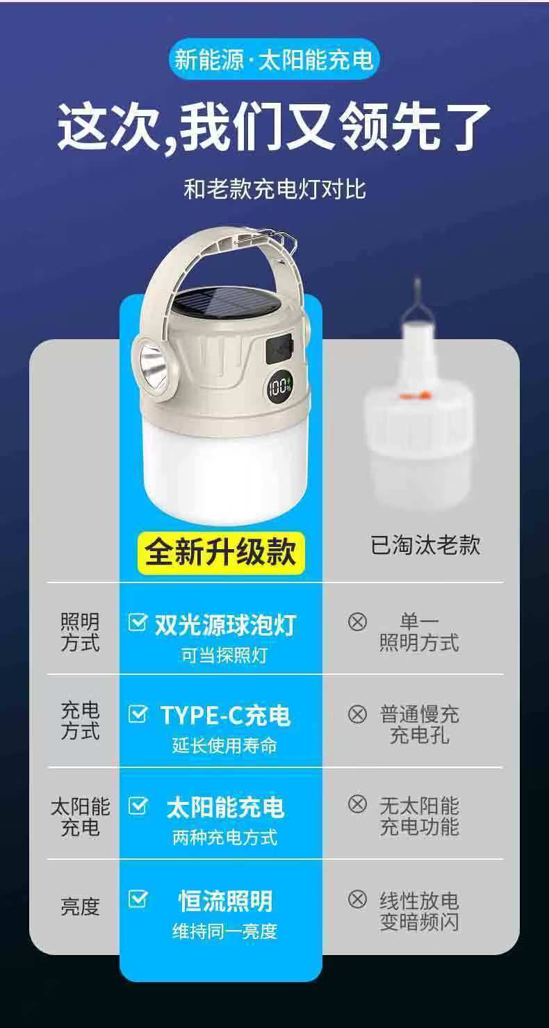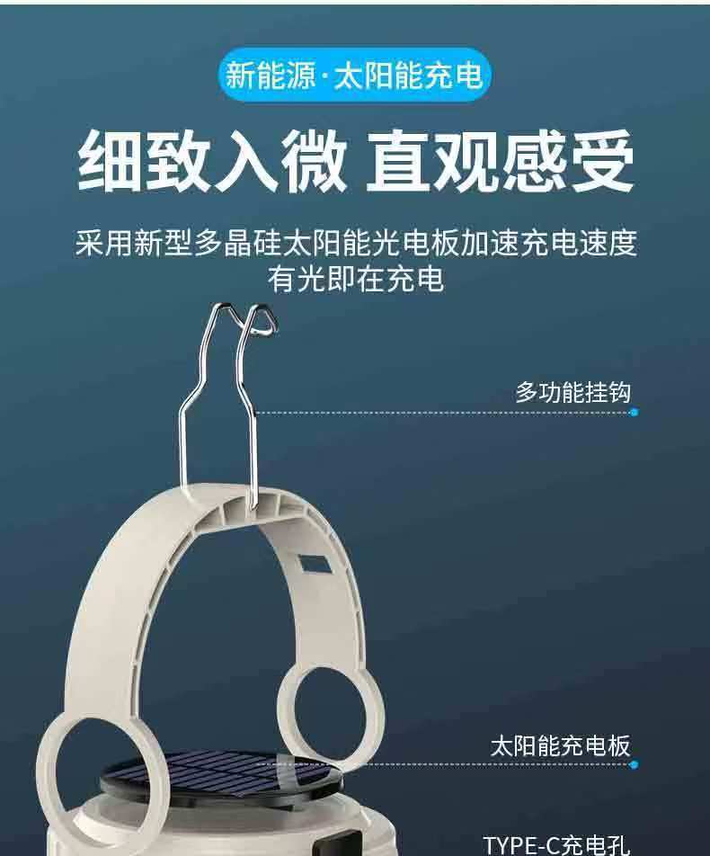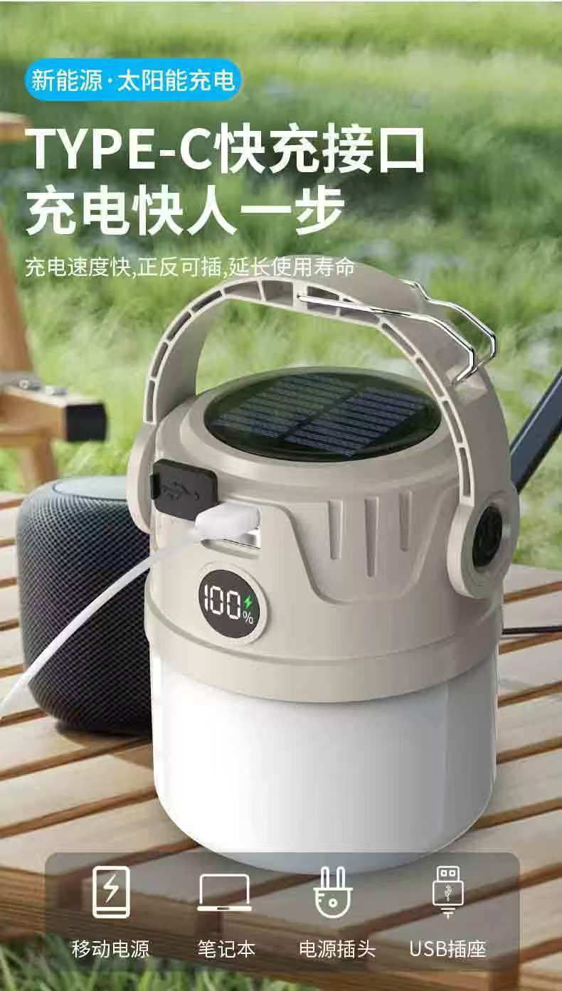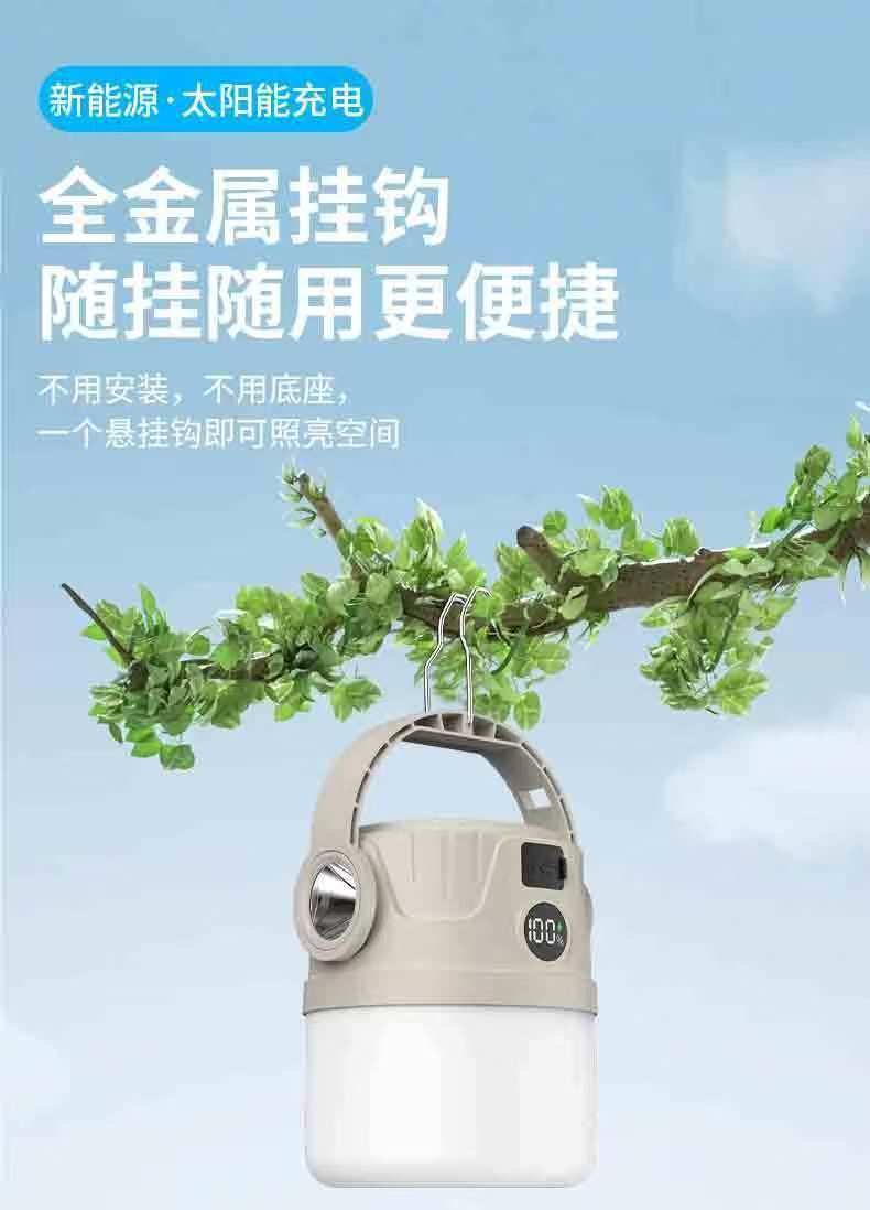 太陽能手提燈新款露營充電戶外超長續航應急燈野營照明燈