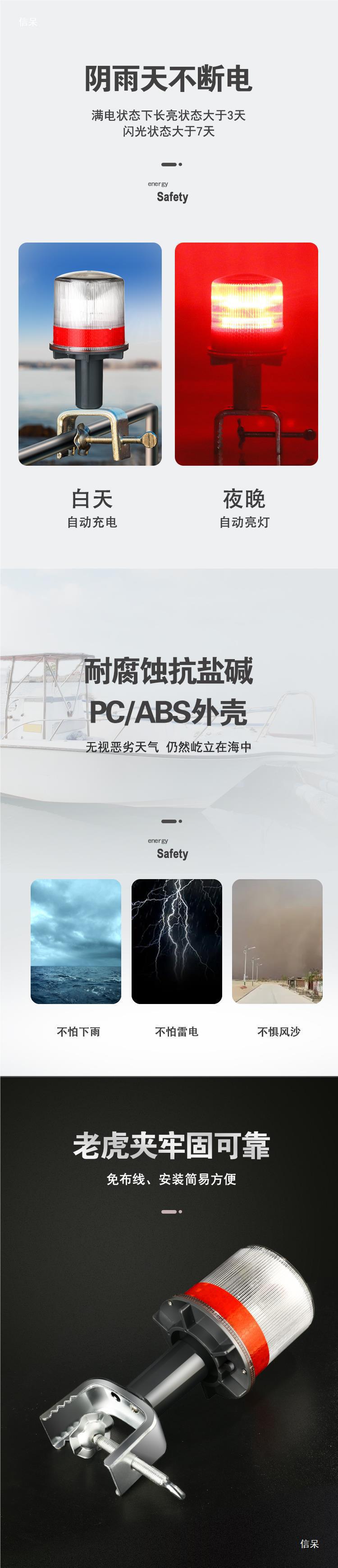 船舶信號燈船用太陽能貨船海上閃光長亮頻閃拋錨多功能紅綠桅桿