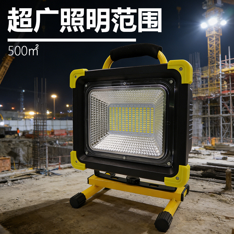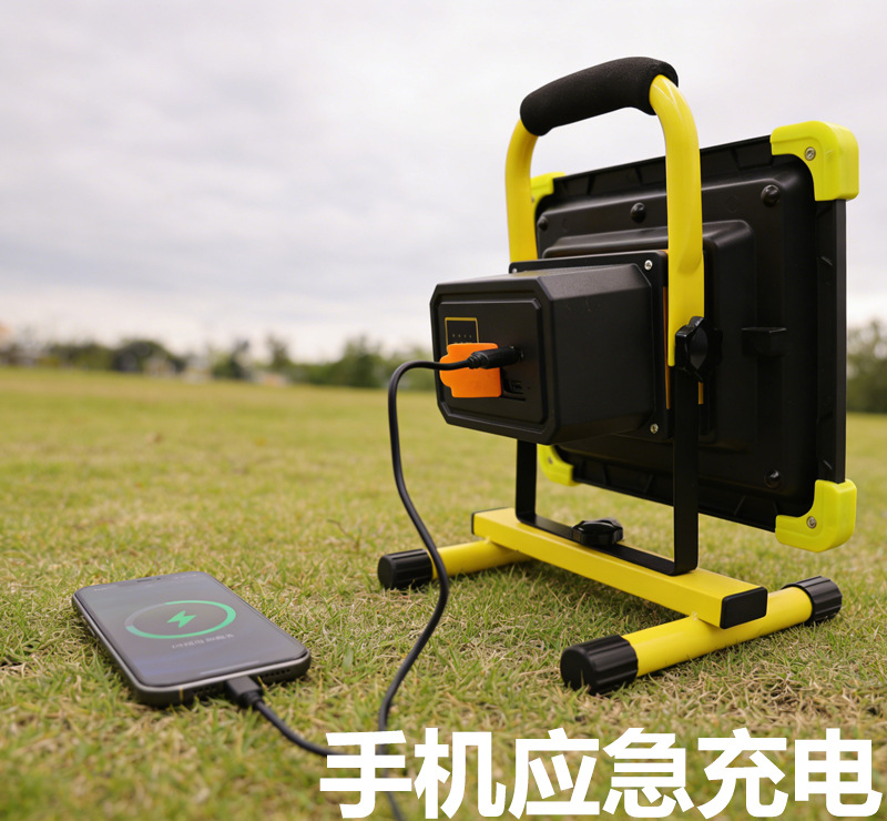 LED充電投光燈戶外照明廣場高亮營地燈珠鋰電太陽能手提照明工礦