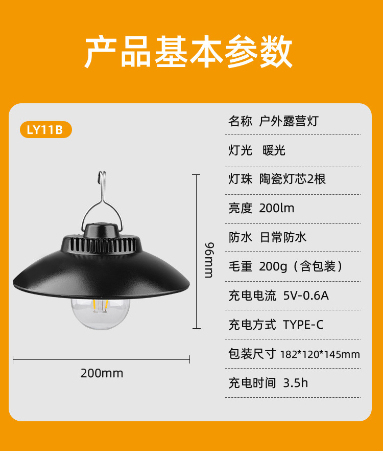 戶外可攜式露營燈懸掛式氛圍燈USB充電家用照明燈防水帳篷燈
