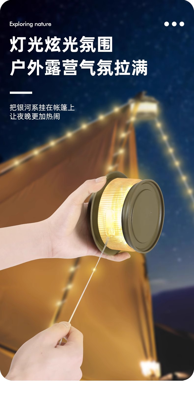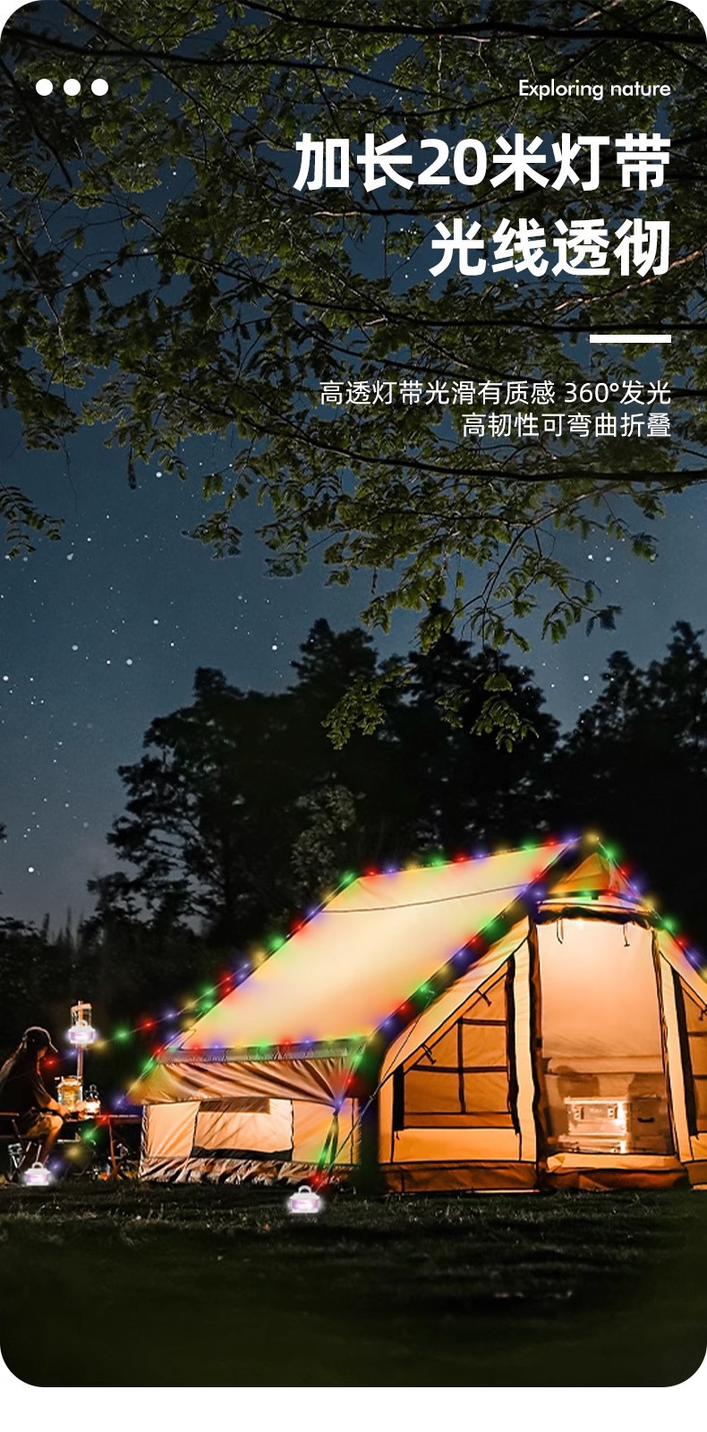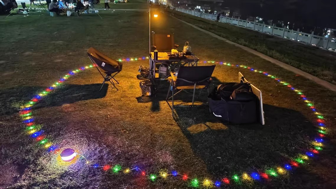 戶外星河露營卷尺燈野營氛圍燈帶防水可攜式收納串燈營地照明帳篷燈