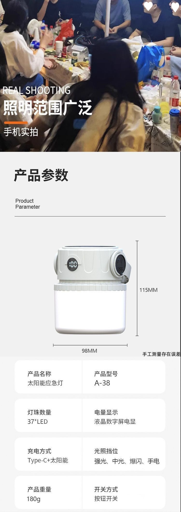 露營太陽能戶外充電超長續航應急燈野營帳篷擺攤充電式照明燈家用