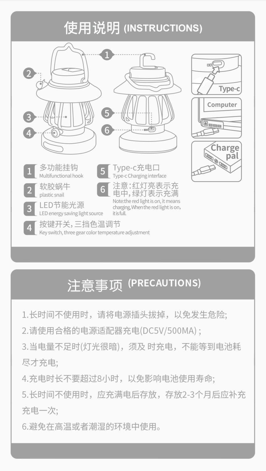 新款戶外露營燈野餐氛圍燈充電LED復古可攜式時尚臥室台燈手提燈