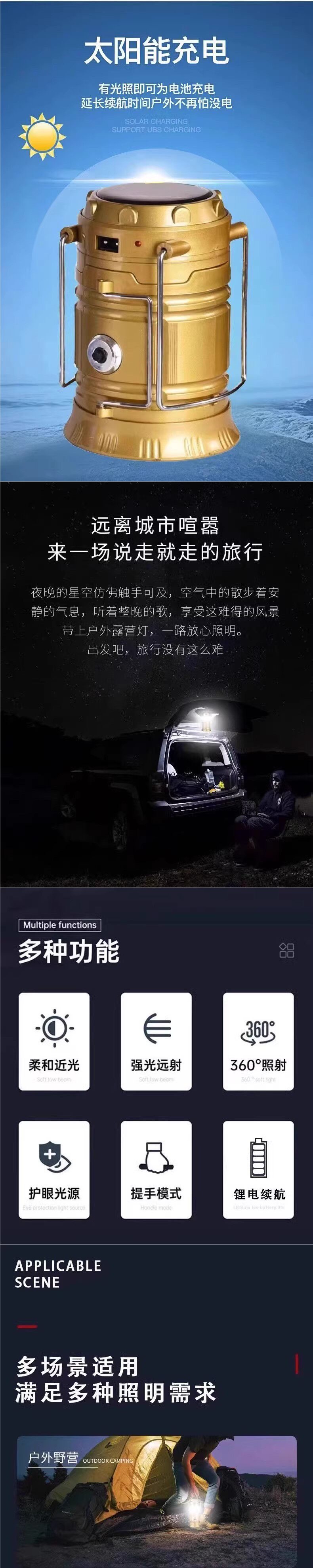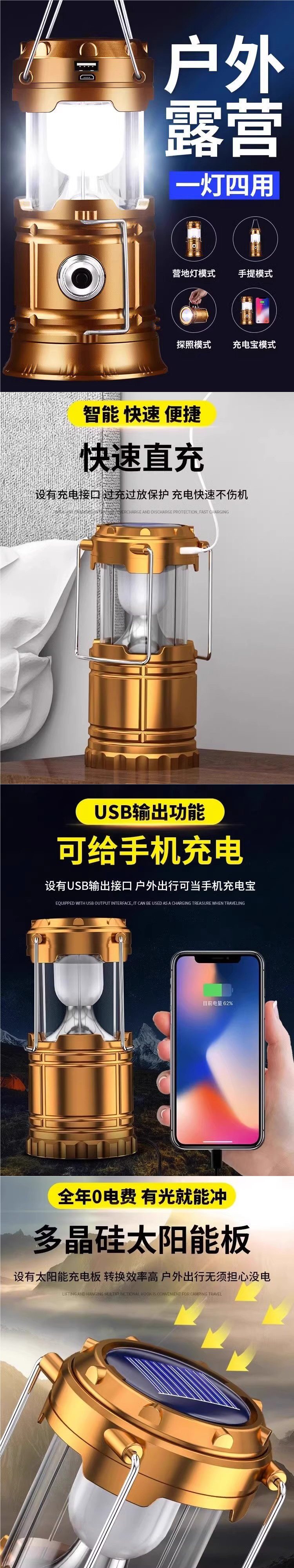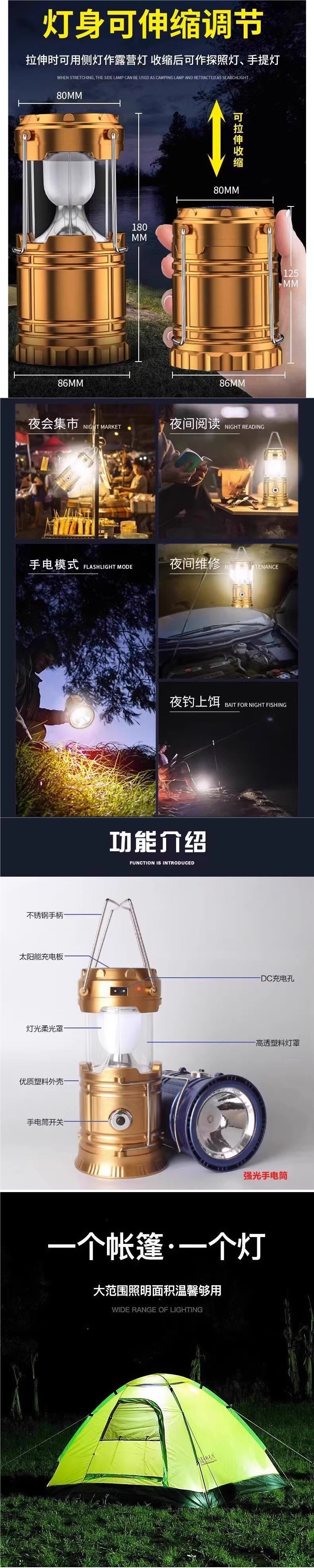 太陽能戶外露營燈超長續航馬燈應急照明手電筒充電氛圍燈帳篷燈