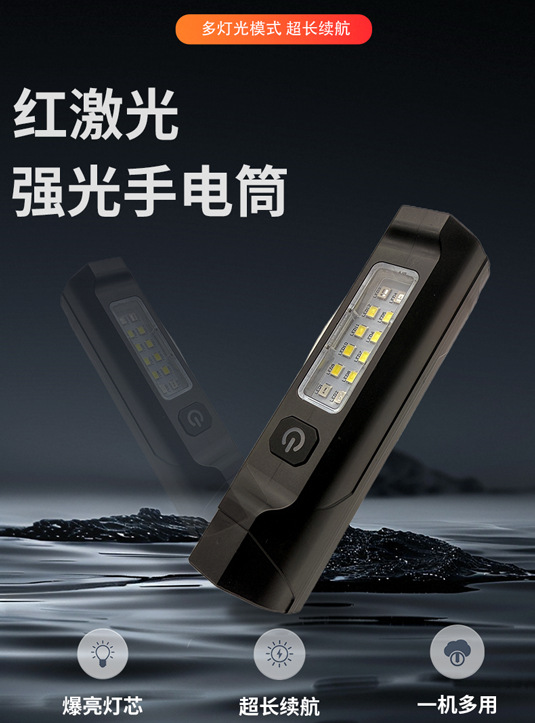 usb充電聚光遠射led多功能手電筒強光可攜式長續航鐳射手持