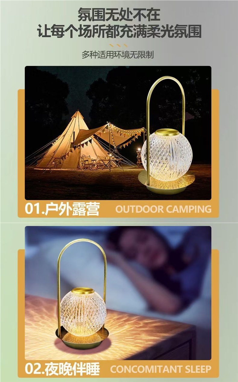 露營燈超長續航復古台燈床頭台燈戶外露營燈手提燈家庭停電應急燈