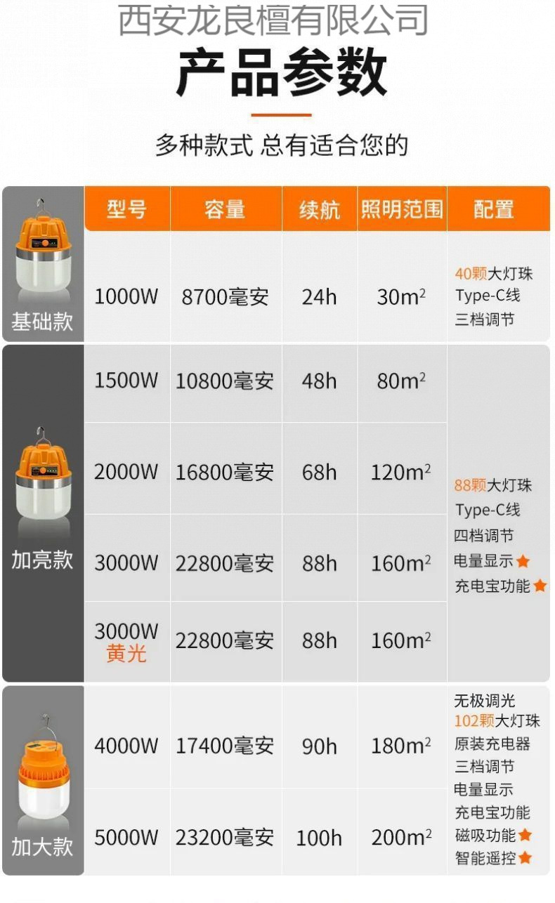 耐用燈泡夜市擺攤地攤燈移動式燈露營家用停電應急室外照明