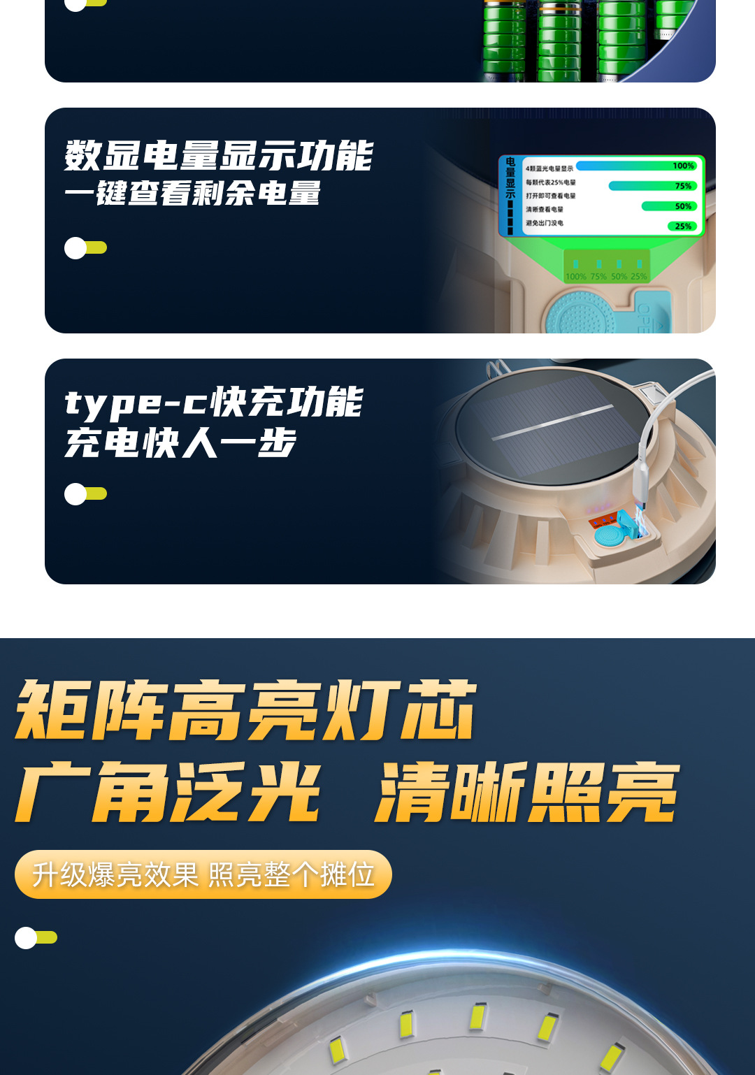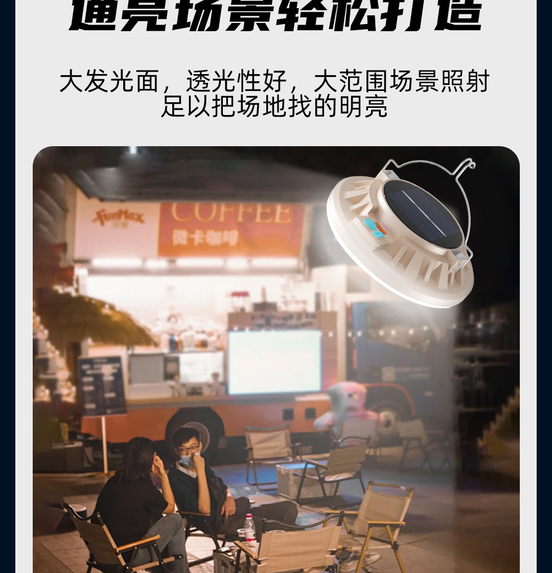 戶外太陽能露營燈夜市擺攤照明停電應急燈充電超長續航帳篷燈掛燈