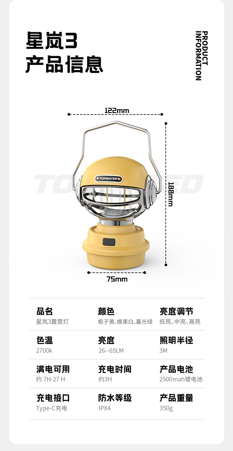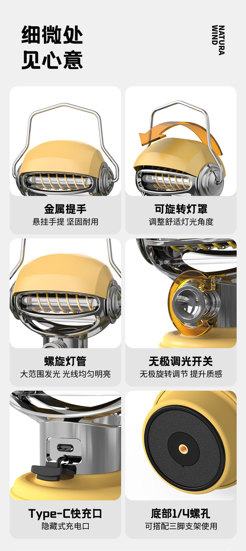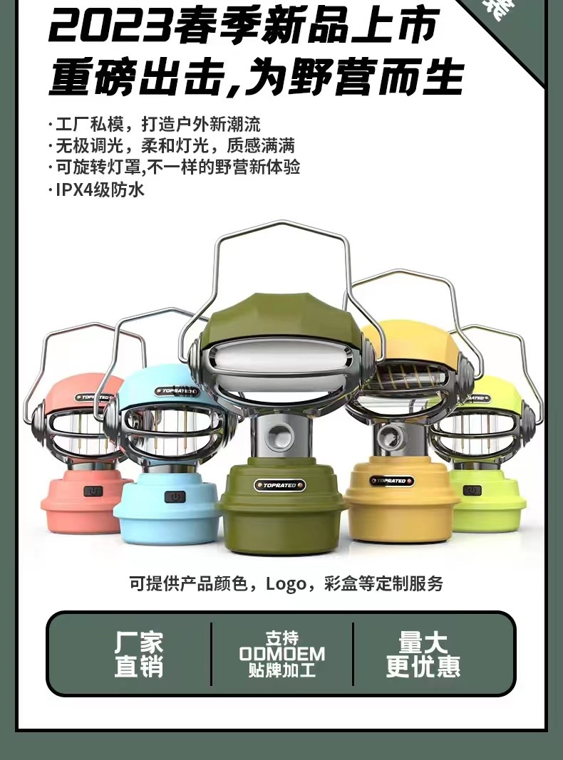 戶外露營氛圍燈手提野營營地燈掛燈充電帳篷燈露營燈LED可調光