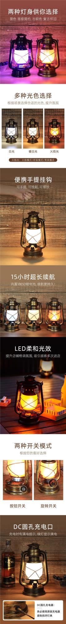 充電酒吧台燈裝飾氛圍燈創意復古馬燈戶外道具露營煤油燈桌燈提燈