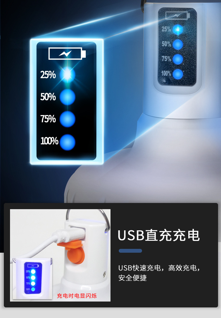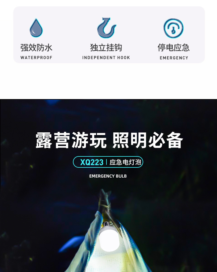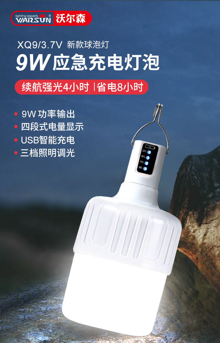 沃爾森XQ9地攤燈充電戶外燈照明應急掛燈家用露營充電燈泡應急燈