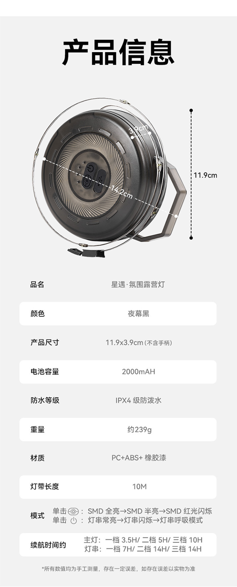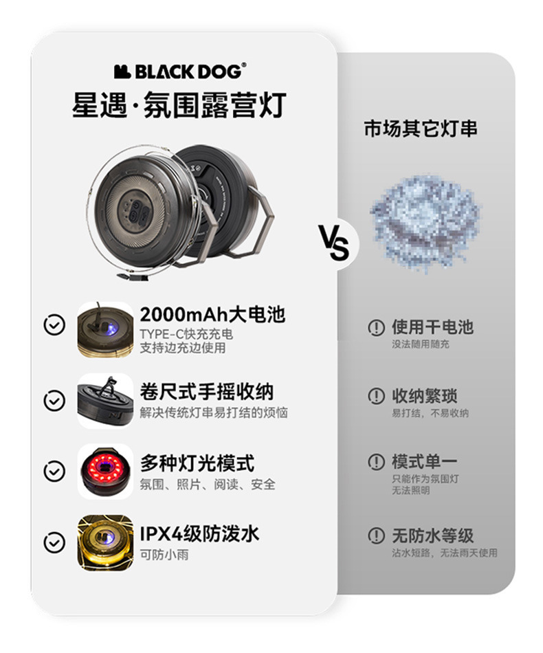 Blackdog黑狗戶外卷尺氛圍燈串天幕燈帶led戶外帳篷燈手搖收納