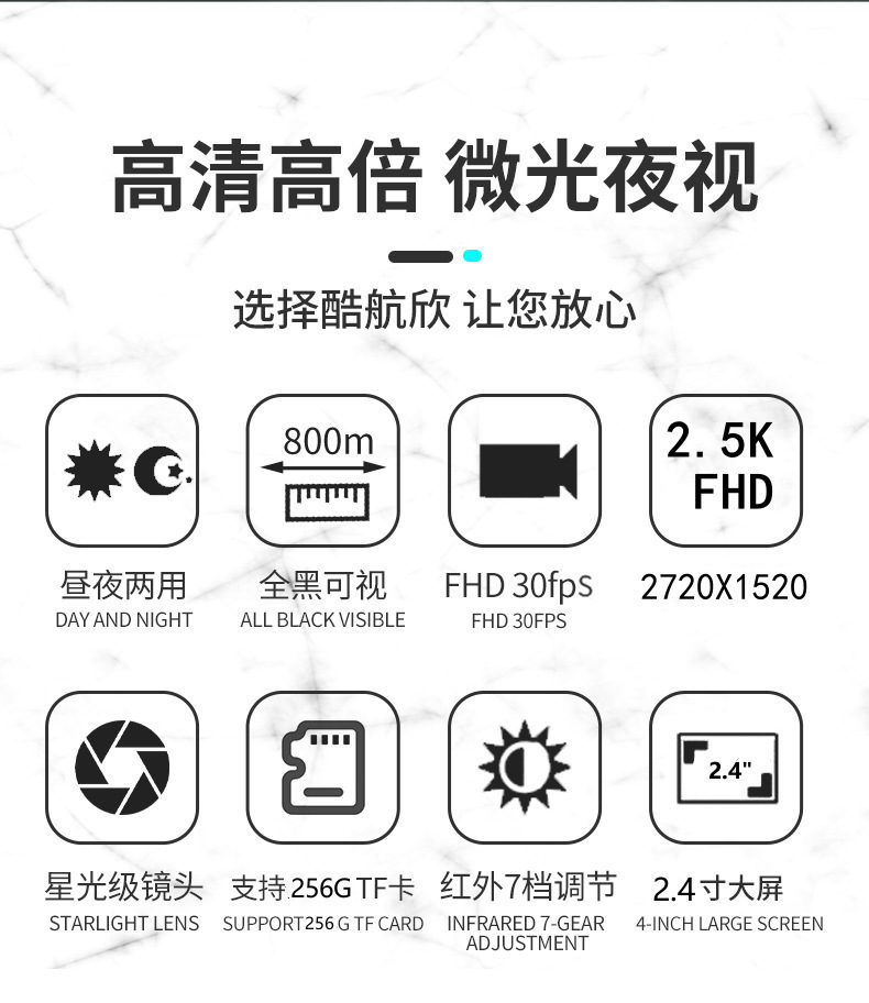 紅外燈: 3W,850nm,強紅外聚光燈,7檔紅外調節